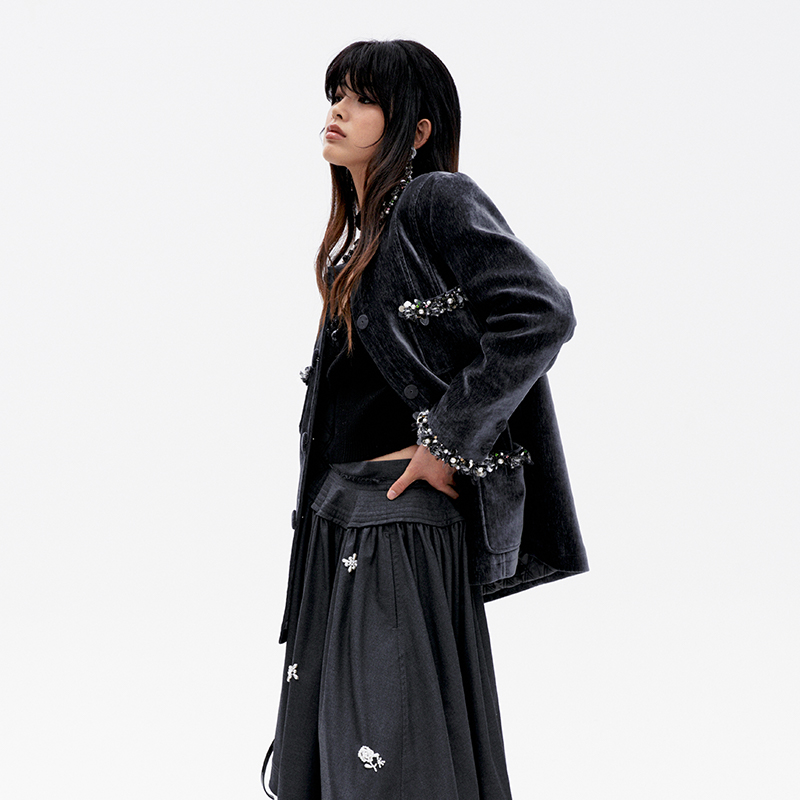lefame拉飞姆丝绒重工边饰宽松H型廓形OVERSIZE西装 外套女