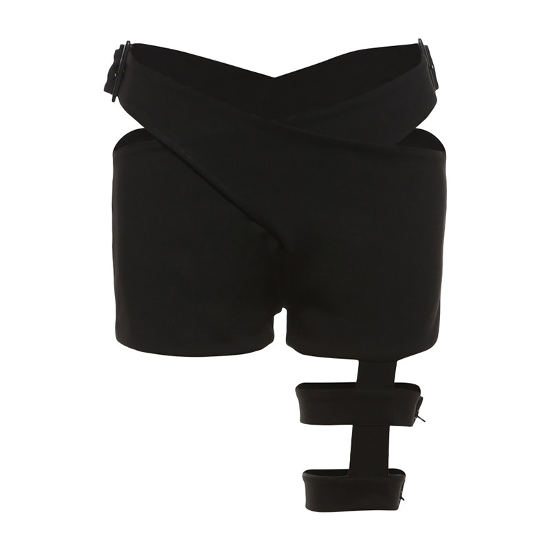 百搭高腰热裤 女 潮 港味设计感镂空高腰开叉腿圈休闲短裤 怪诞女孩