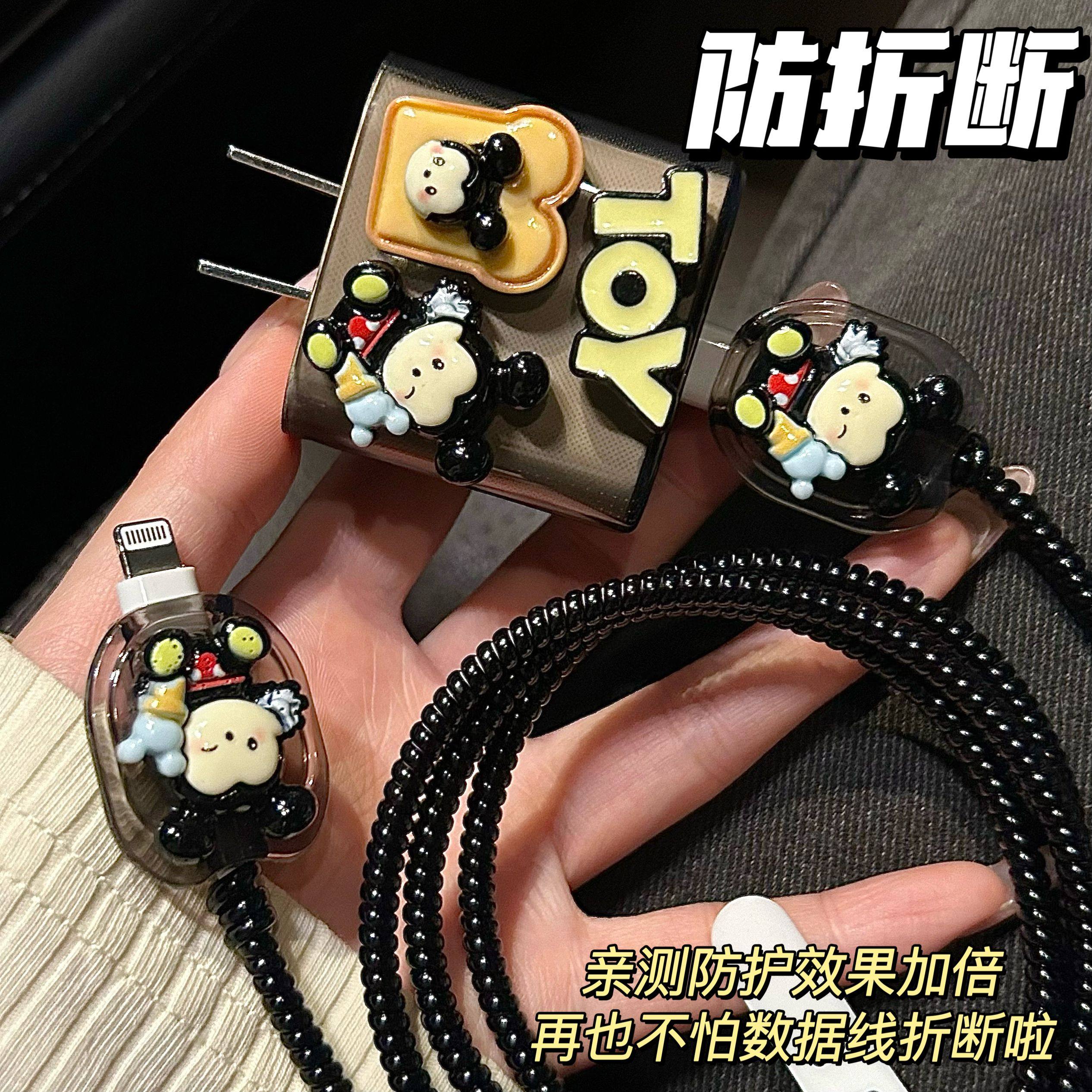 卡通小动物适用20W苹果17air充电器保护套iPhone16plus数据线防折断15promax 13手机充电头保护壳防猫咬