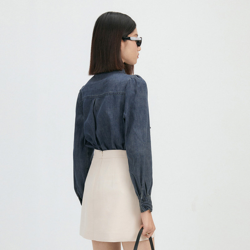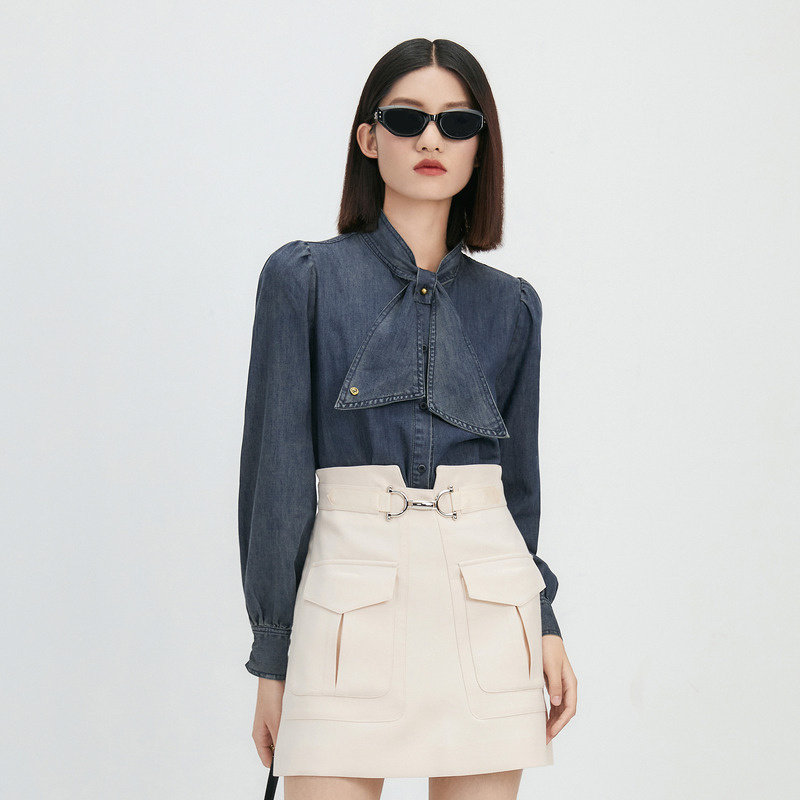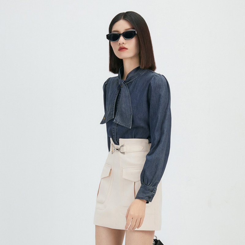 7952 百搭时尚 普普风法式 领带设计感搭扣牛仔上衣女2024早春新品