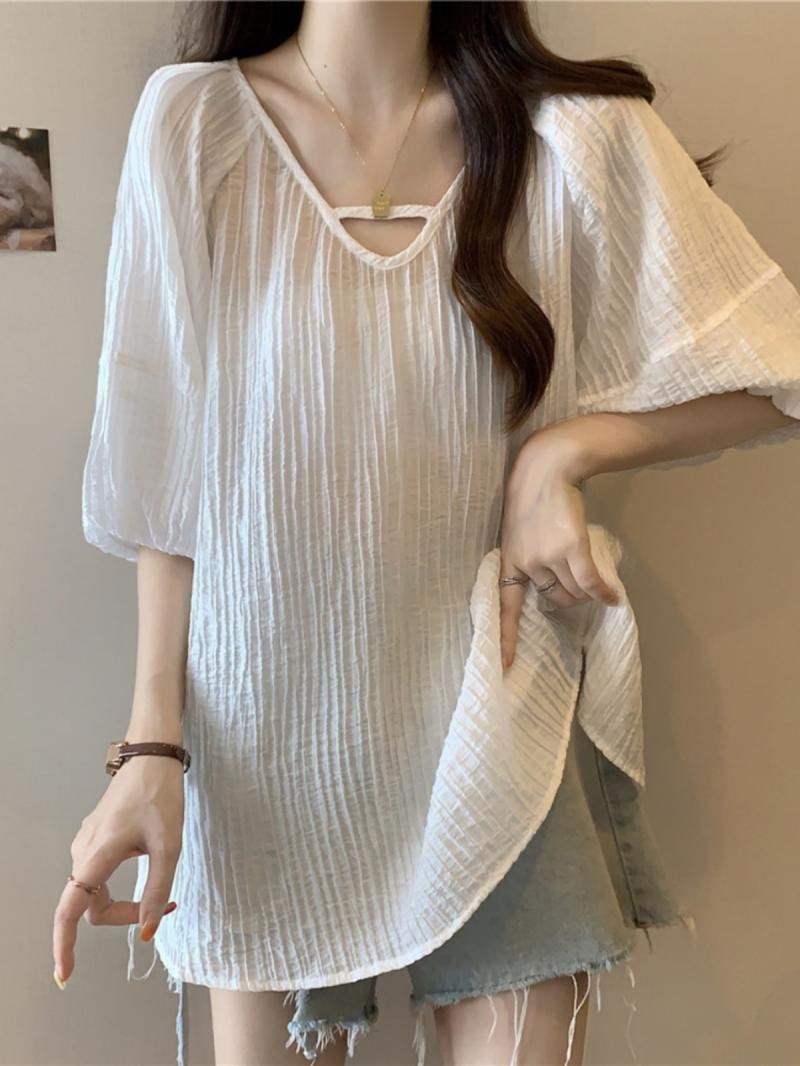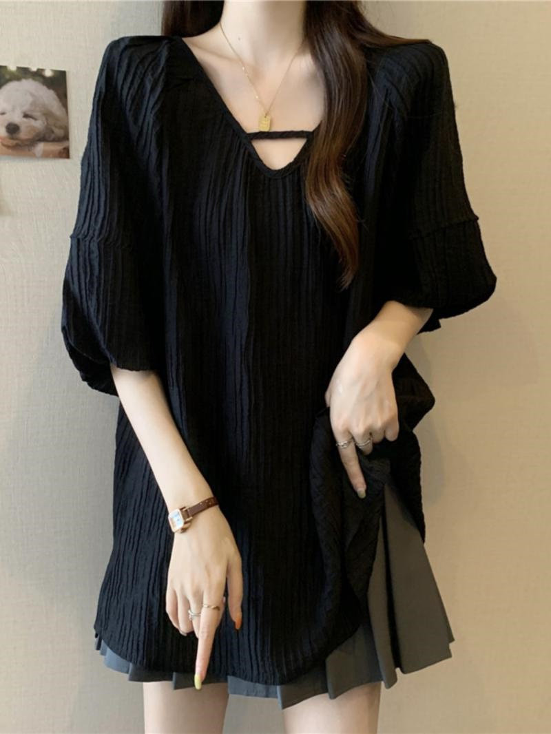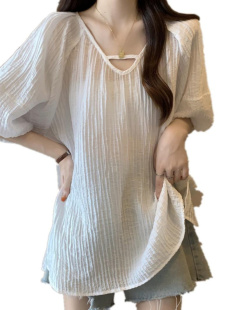中长款 法式 夏款 胖妹妹300斤超大码 女上衣 温柔风气质纯色正肩时尚