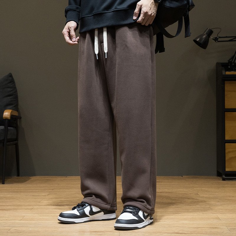 男士 休闲拖地男裤 直筒加绒卫裤 宽松大码 子 春秋新款 秋冬加大运动裤