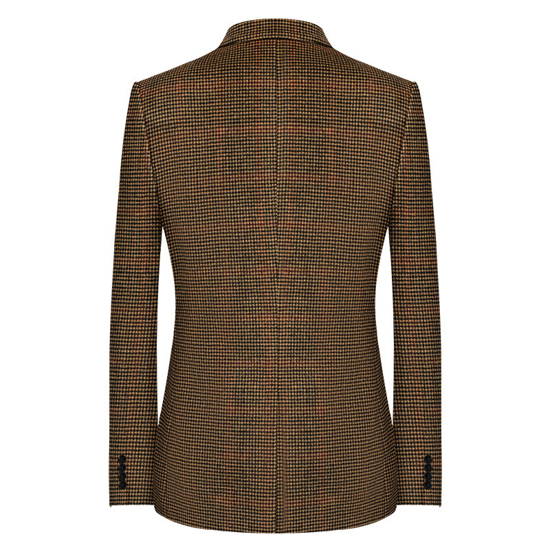 潮流男装 英伦风粗花呢千鸟格休闲西服韩版 外套男新款 本派羊毛西装