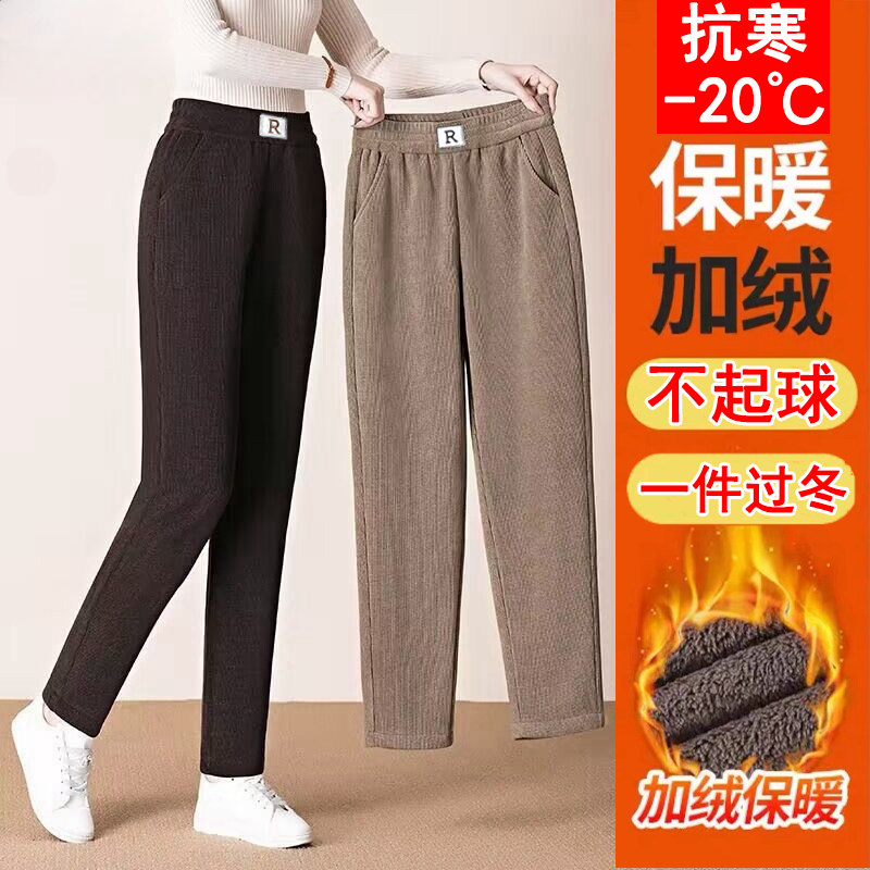 子女冬季 外穿休闲女裤 2025新款 宽松百搭妈妈裤 哈伦裤 加绒加厚裤