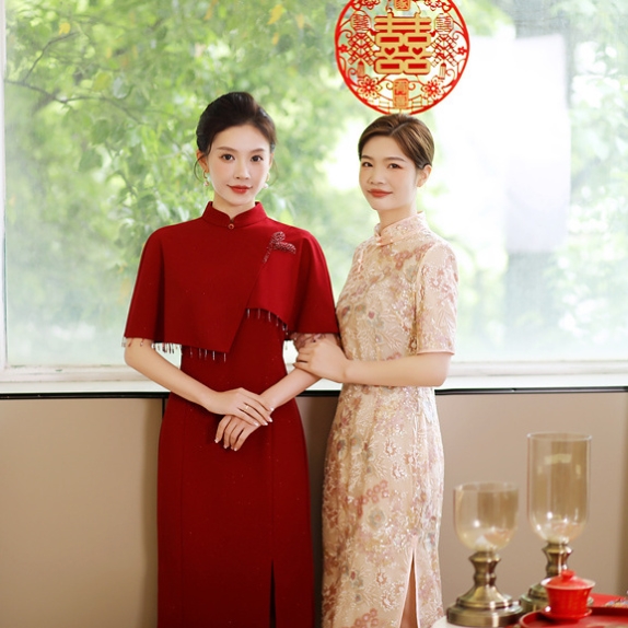 2023婆婆喜服冬季 丈母娘旗袍连衣裙参加婚礼妈妈礼服高 高端婚宴装