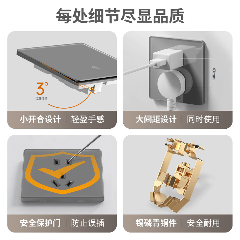 公牛G32一开八孔插座带开关86型暗装 墙壁电源插座多功能厨房插座