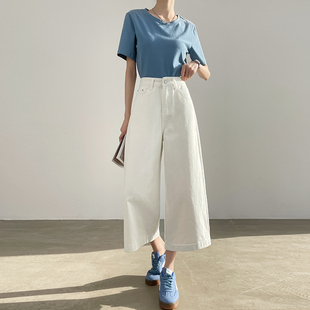 高腰显瘦小个子八分宽松直筒阔腿裤 薄款 子 女春夏季 浅色七分牛仔裤