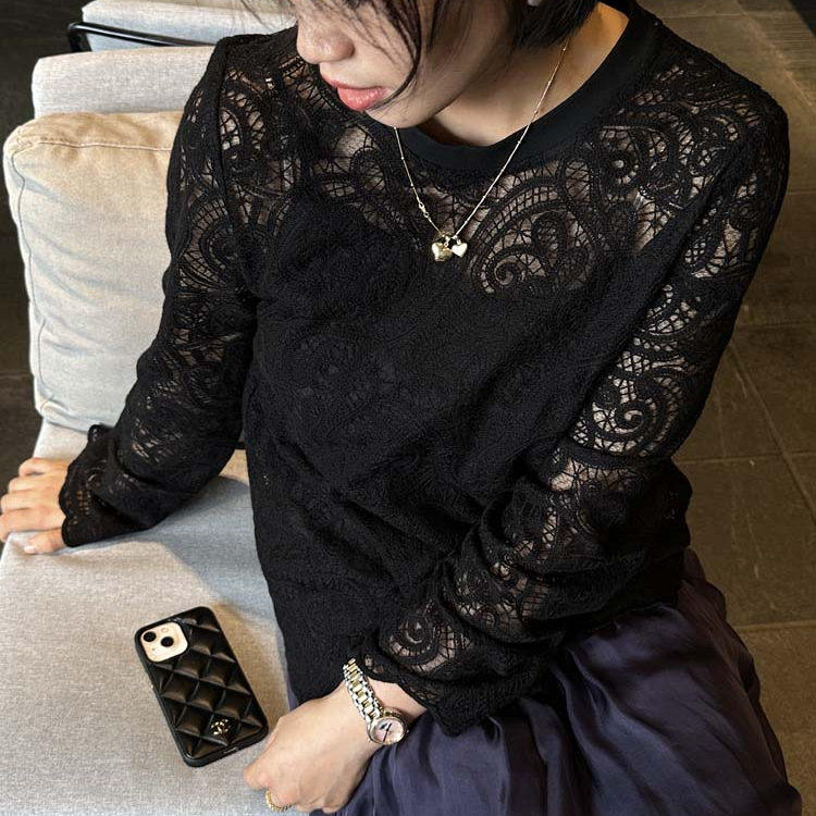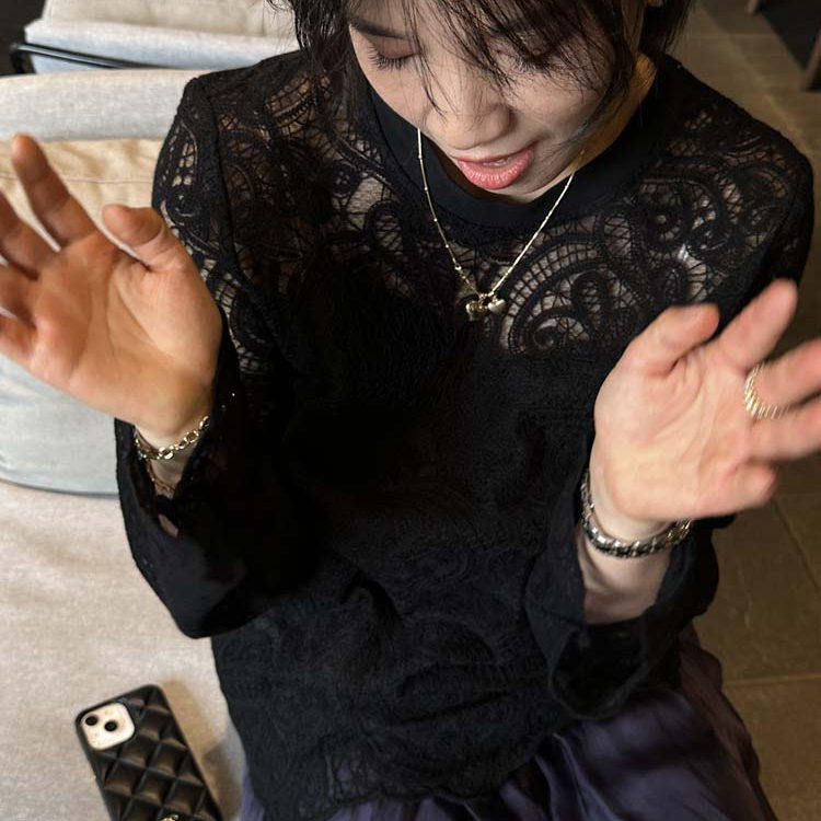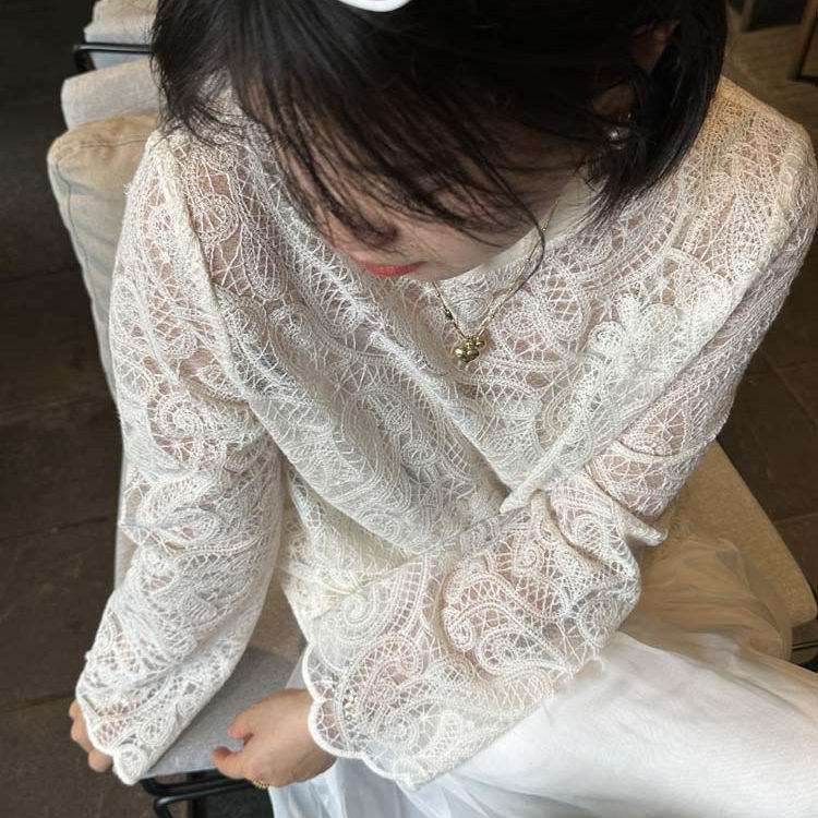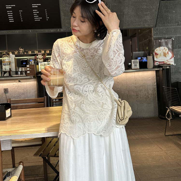 宽松上衣女春装 唯美 蕾丝花边刺绣喇叭袖 法式 两件套 优雅气质