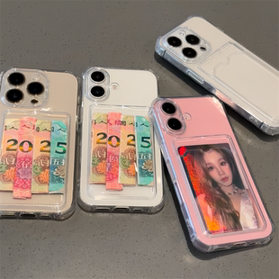 KEWU拍立得手机壳适用于iPhone16 透明插小卡14pro情侣闺蜜追星13气囊软壳硅胶15plus简约 15苹果16promax经典