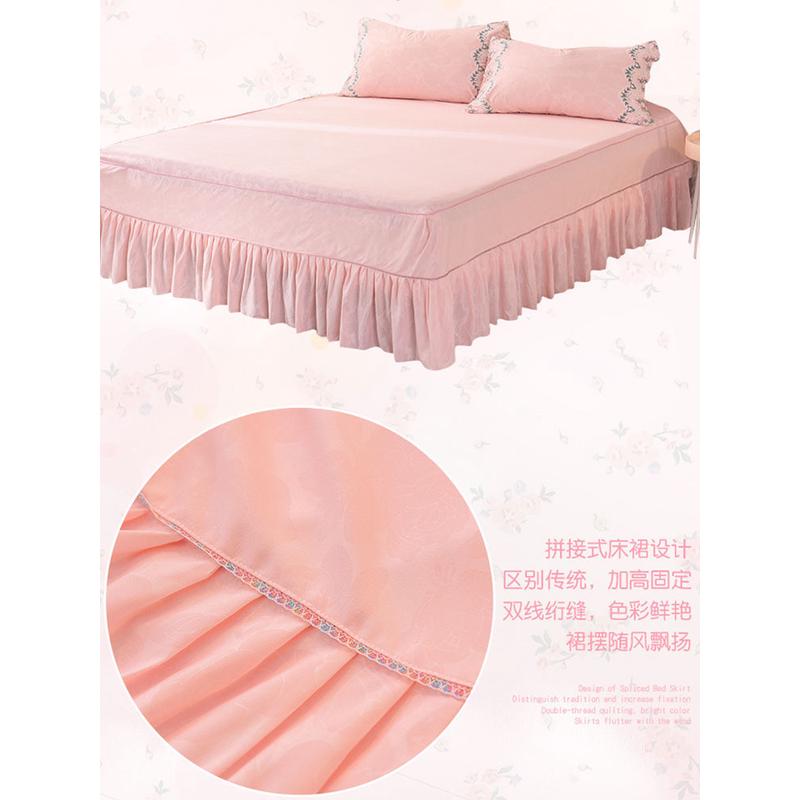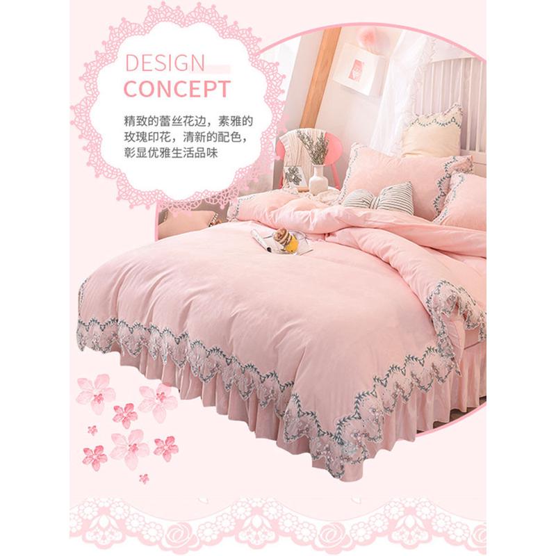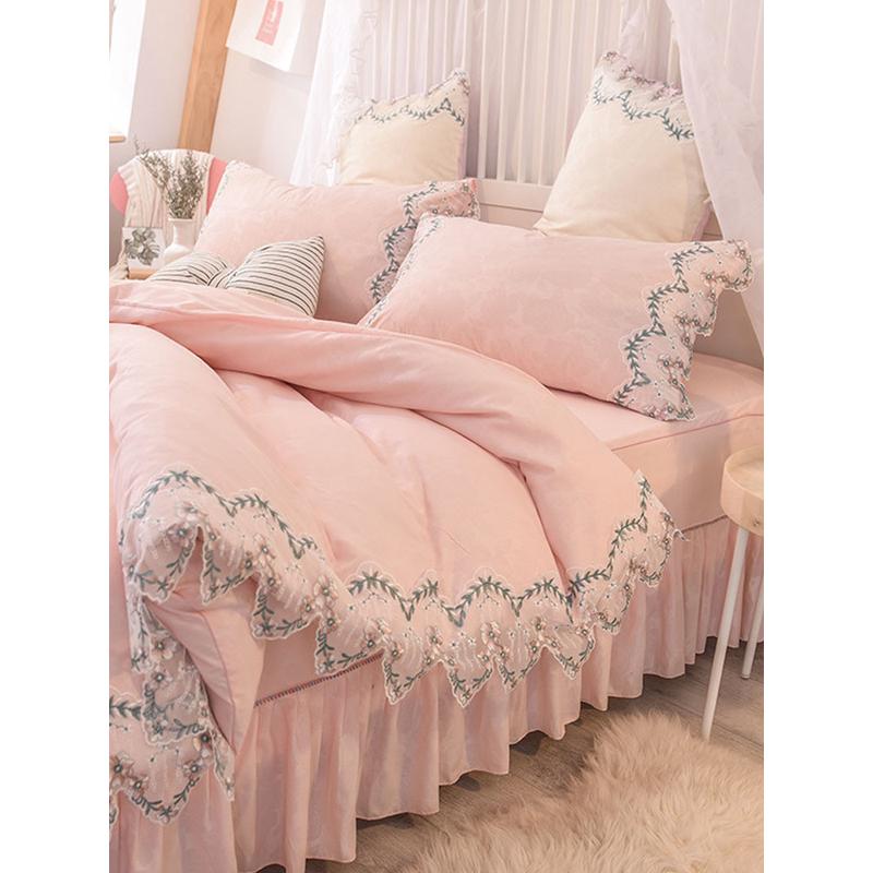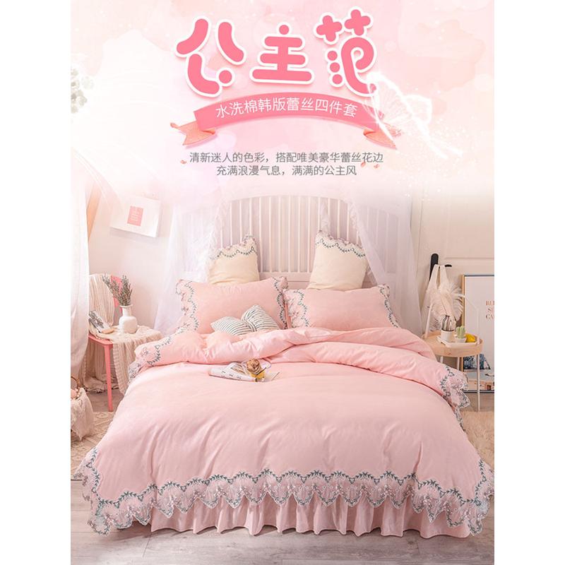 iyr7韩版 水洗棉蕾丝花边床笠床裙四件套纯色少女心公主风磨毛床上