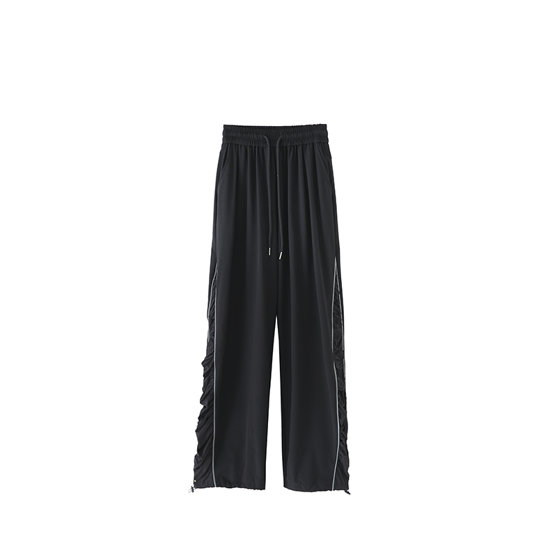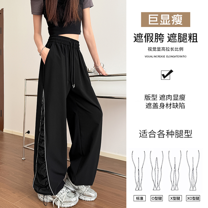 工装 子高腰阔腿抽绳卫裤 裤 小个子休闲降落伞裤 潮 女春夏季 黑色美式