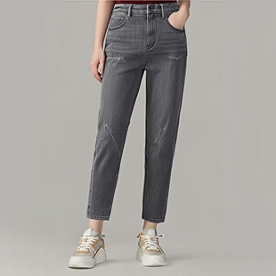 宽松休闲阔腿裤 爱情魔鬼鱼 新款 女2025冬季 黑灰色高腰复古牛仔裤