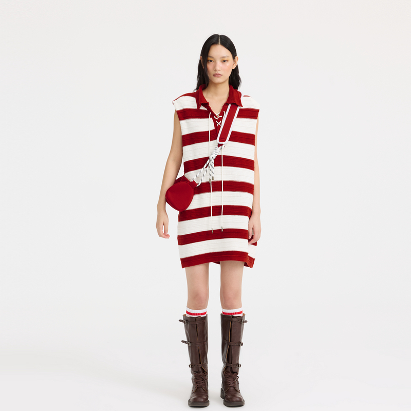 运动风条纹毛织连衣裙RL11103104 设计师款 REVAN芮范2025春季 新品