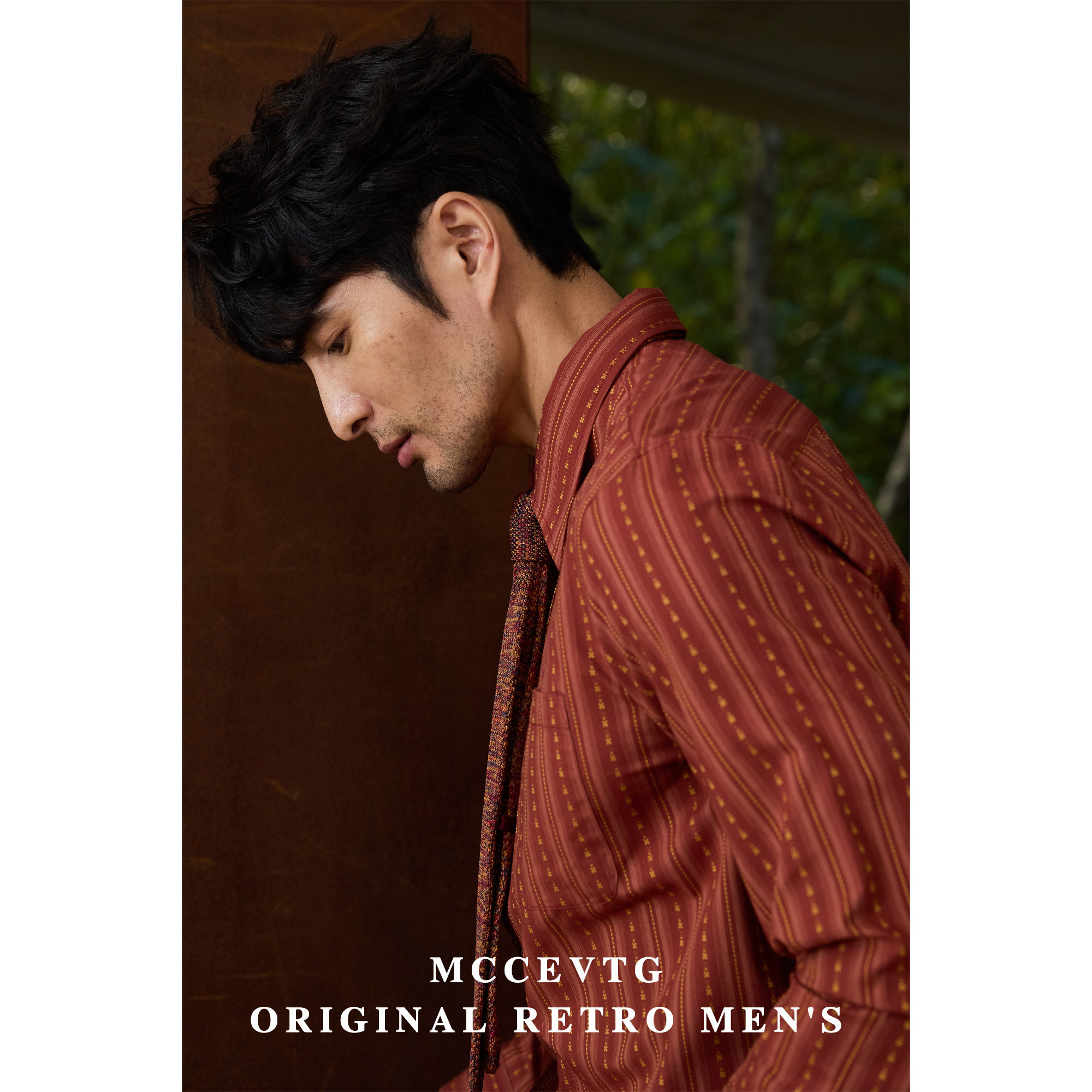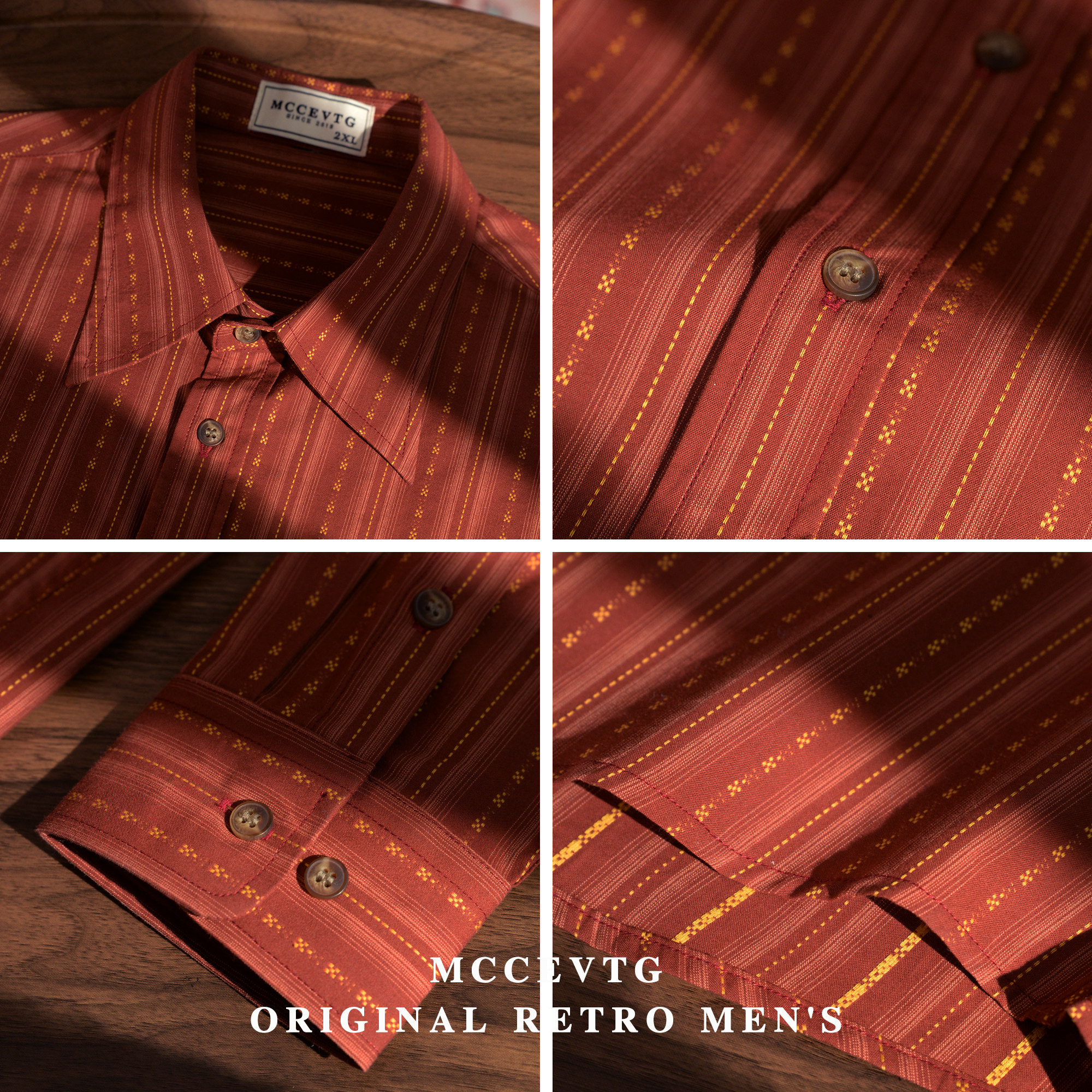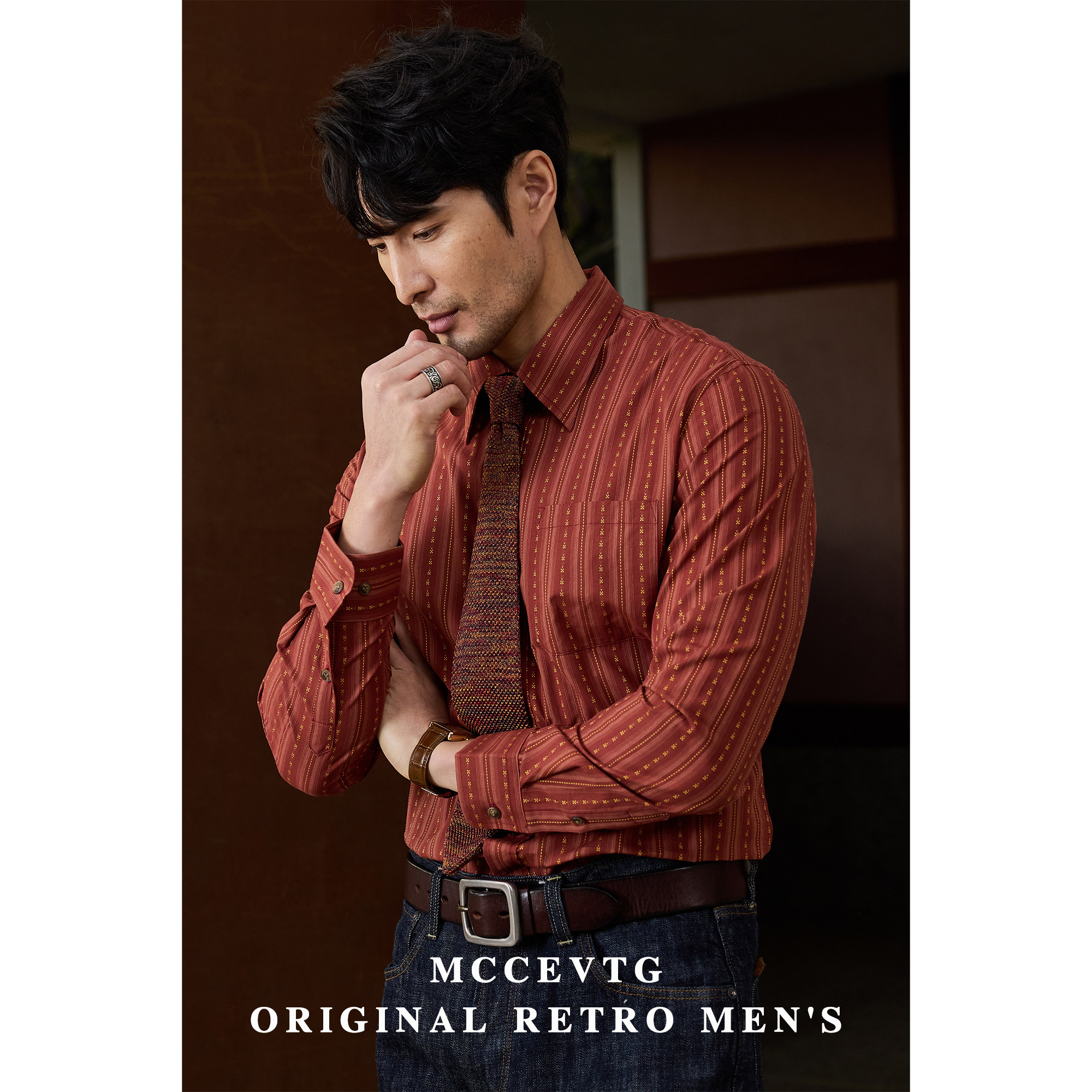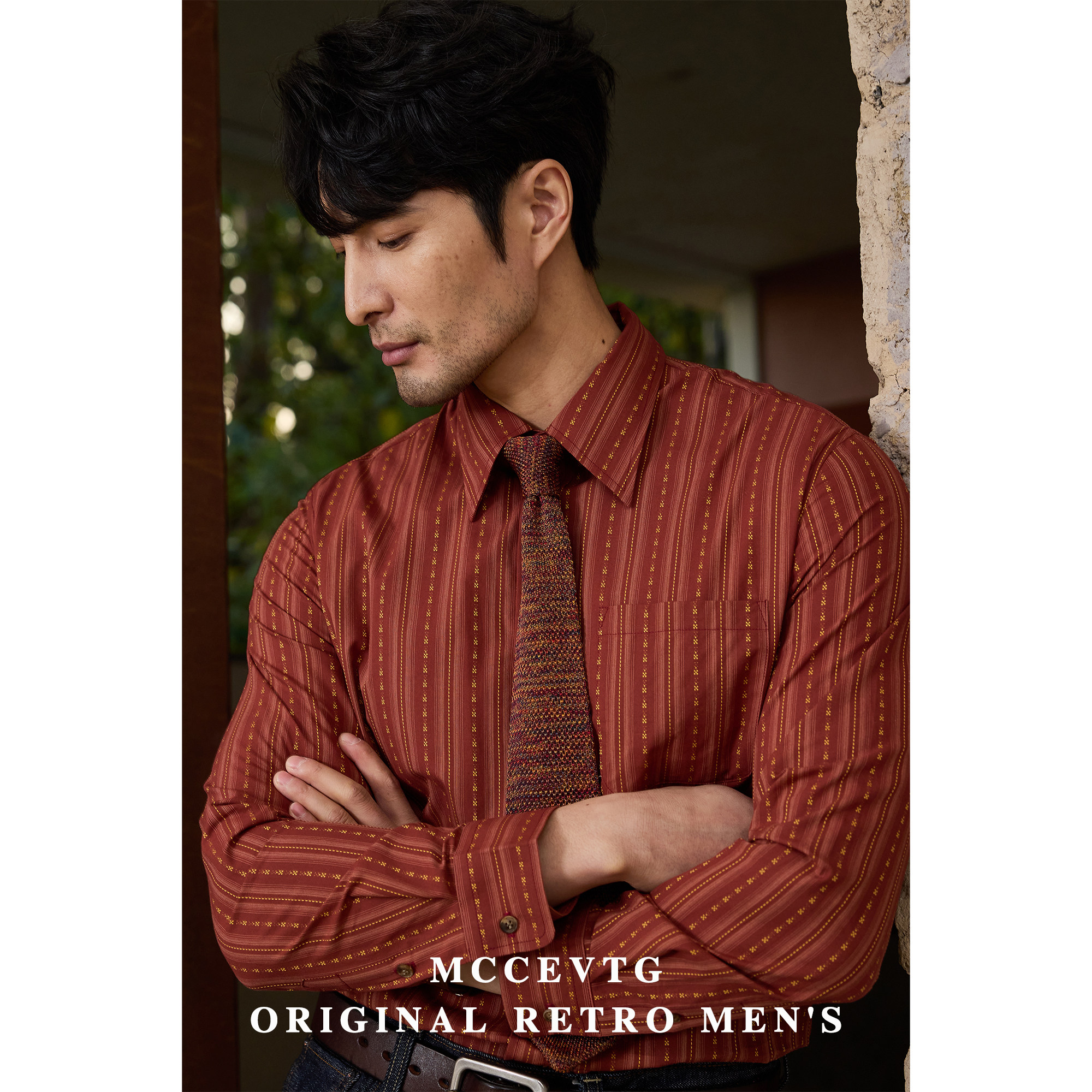 男长袖 安可拉红衬衫 提花竖条纹休闲纯棉复古衬衣 通勤 MCCEVTG美式