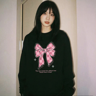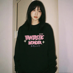 百搭oversize长袖 时尚 上衣 爆款 NOB真维斯黑色纯棉T恤女2025春季