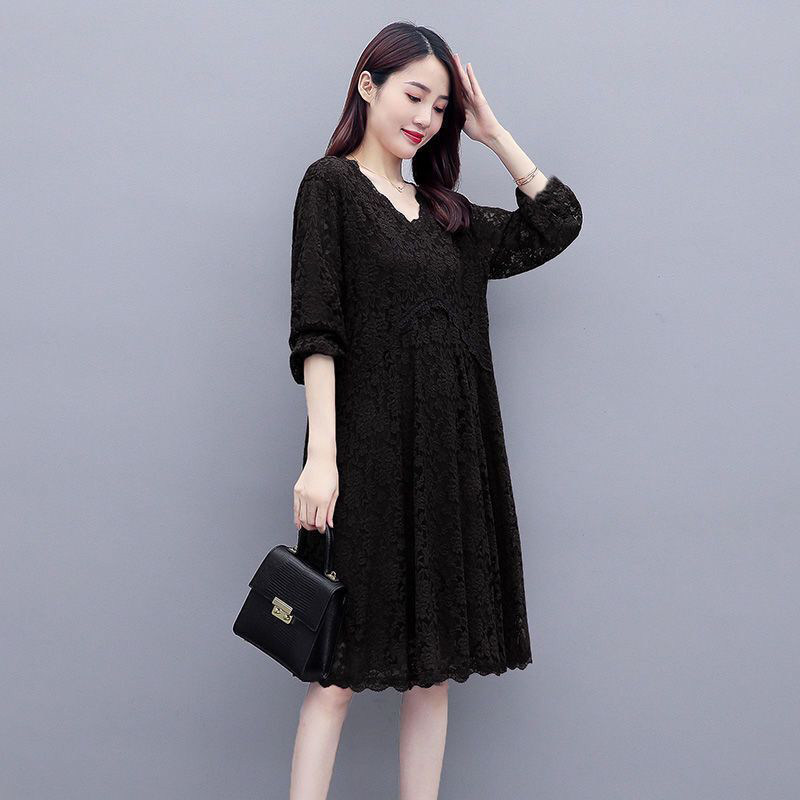 纯欲连衣裙高领长袖 法式 打底裙性感气质大摆短裙 女装 300斤特大码