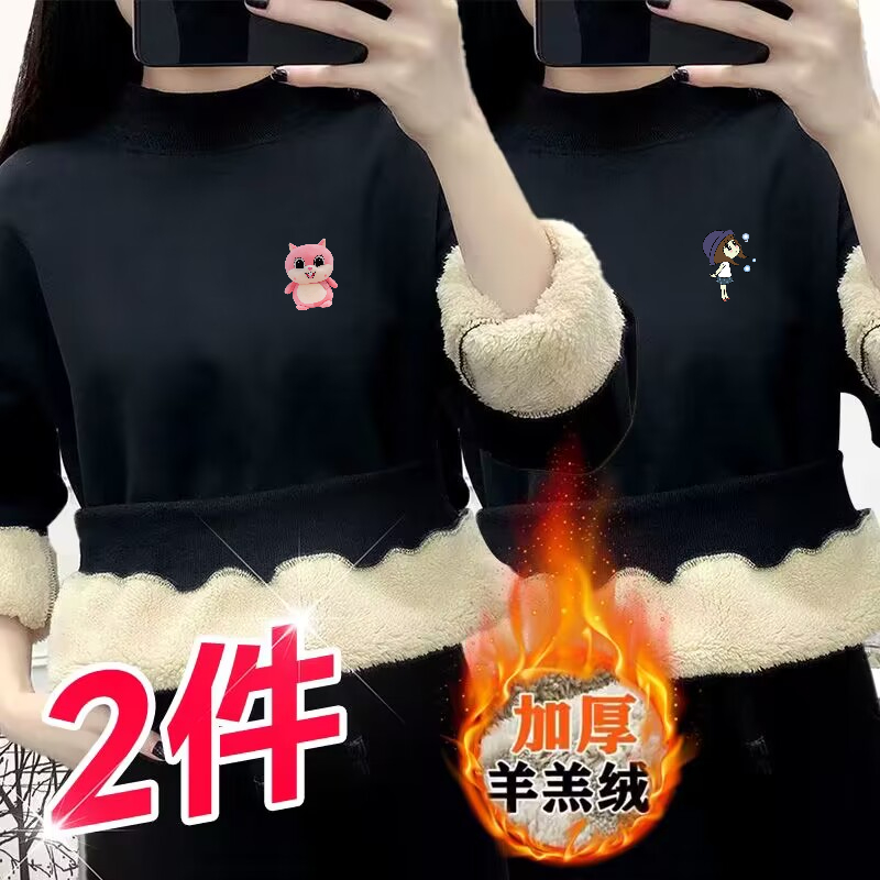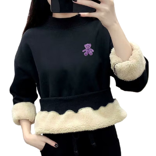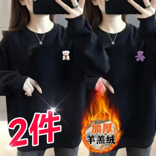 宽松加绒加厚女装 卫衣女羊羔绒2023年圆领套头大码 上衣 新款 秋冬季