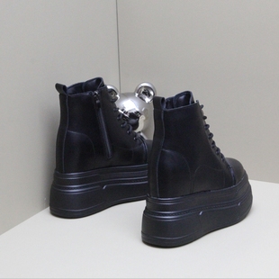 小个子增高12短靴 加绒女鞋 真皮超高马丁新款 14cm厚底2023高帮爆款
