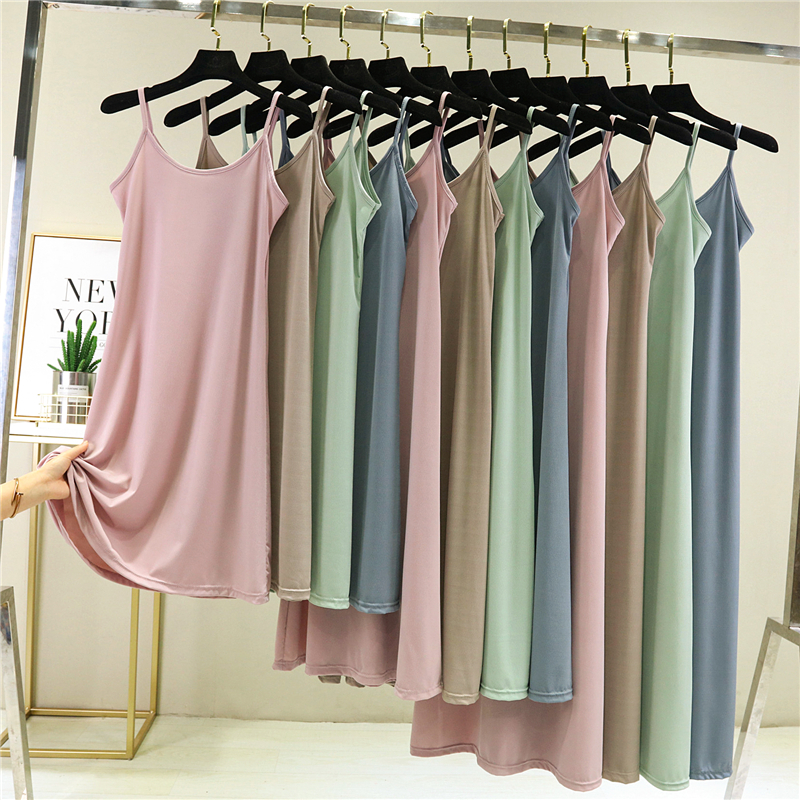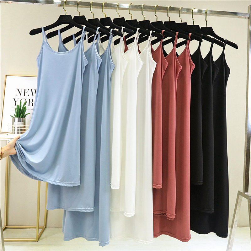 长款 冰丝宽松打底裙内搭衬裙a字连衣裙大码 裙子 薄款 吊带裙女夏季