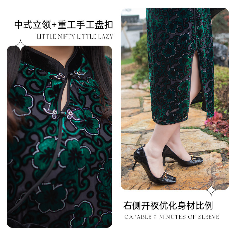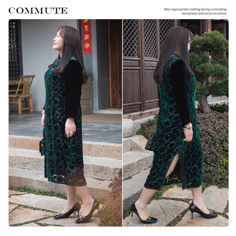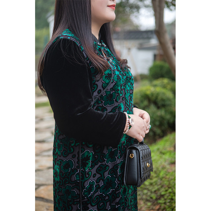 显瘦遮肉 女装 真丝绒改良旗袍修身 连衣裙女优雅100%桑蚕丝胖mm大码