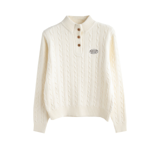 唐狮春秋米白绞花半开襟半高领毛衣女新款 设计感小众 套头毛线衫