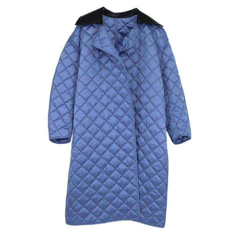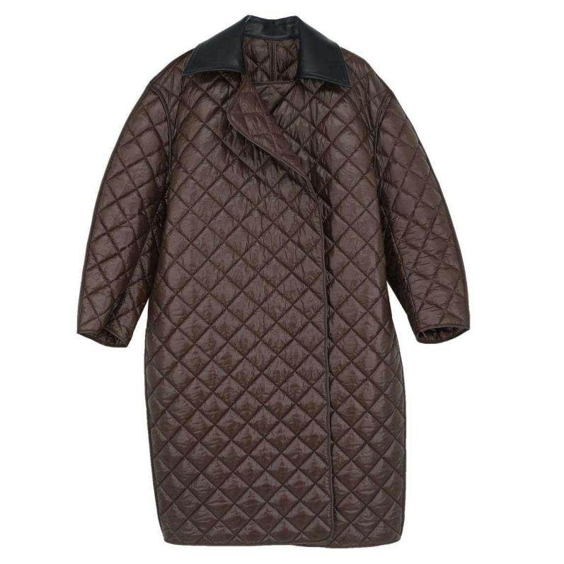YOUWEI有尾2024冬季 皮领拼接廓形行棉长女宽松菱格外套Y2724301