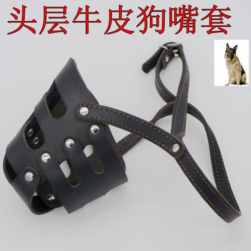 禁咬牛皮口笼防狗咬大型犬真皮狗嘴套口罩罗威纳嘴套德牧藏獒口笼