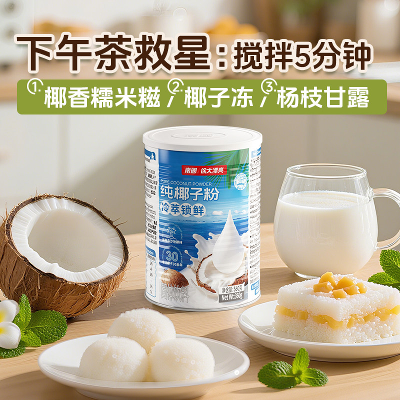 南国海南特产纯椰子粉360g罐装 0添加椰子糯叽叽烘焙原料速溶冲饮