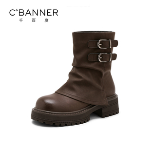 管靴厚底马丁靴女款 裤 新款 千百度美拉德棕色堆堆短靴子女2025秋季