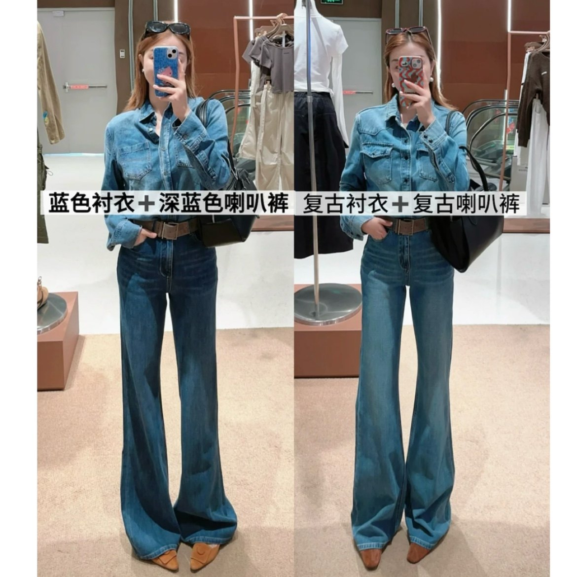 子 女春秋弹力百搭显高拖地马蹄裤 烟灰色高腰修身 显瘦微喇叭牛仔裤