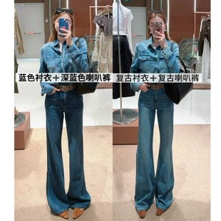 子 高腰显瘦复古垂感喇叭裤 黑灰色双排扣微喇牛仔裤 女秋冬加绒新款