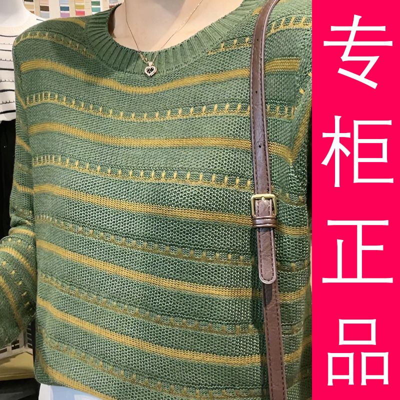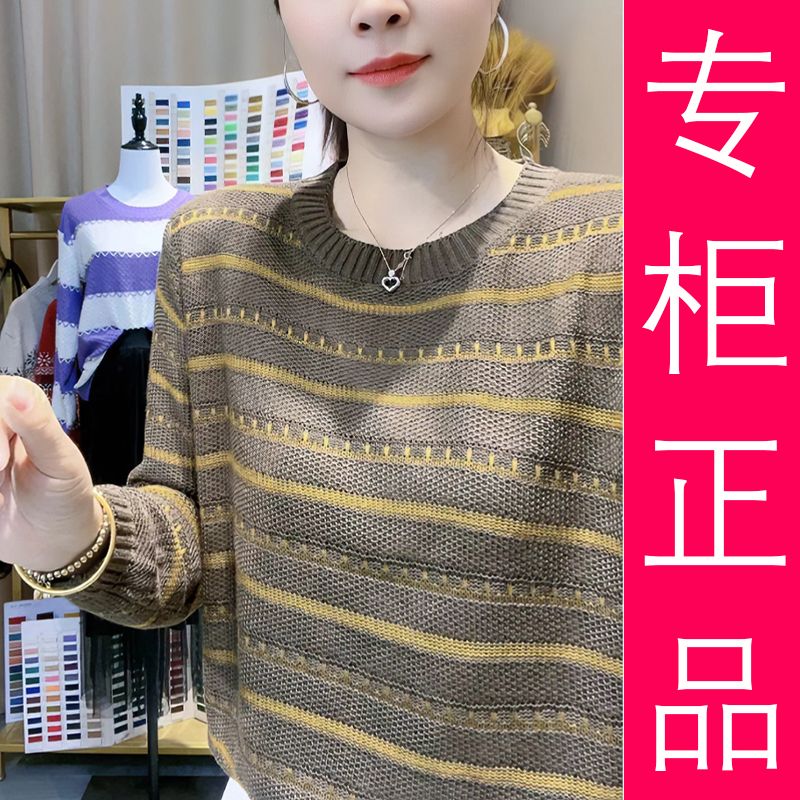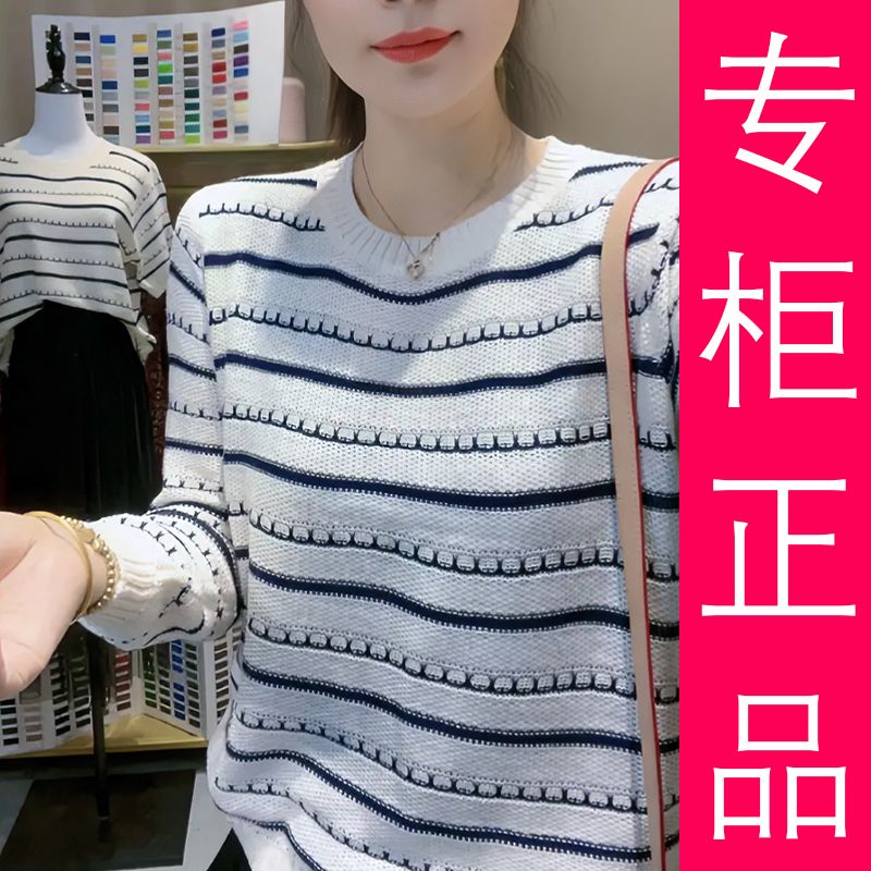 圆领条纹针织衫 新款 2025秋季 宽松轻薄透气显瘦上衣女 专柜正品