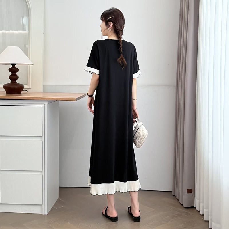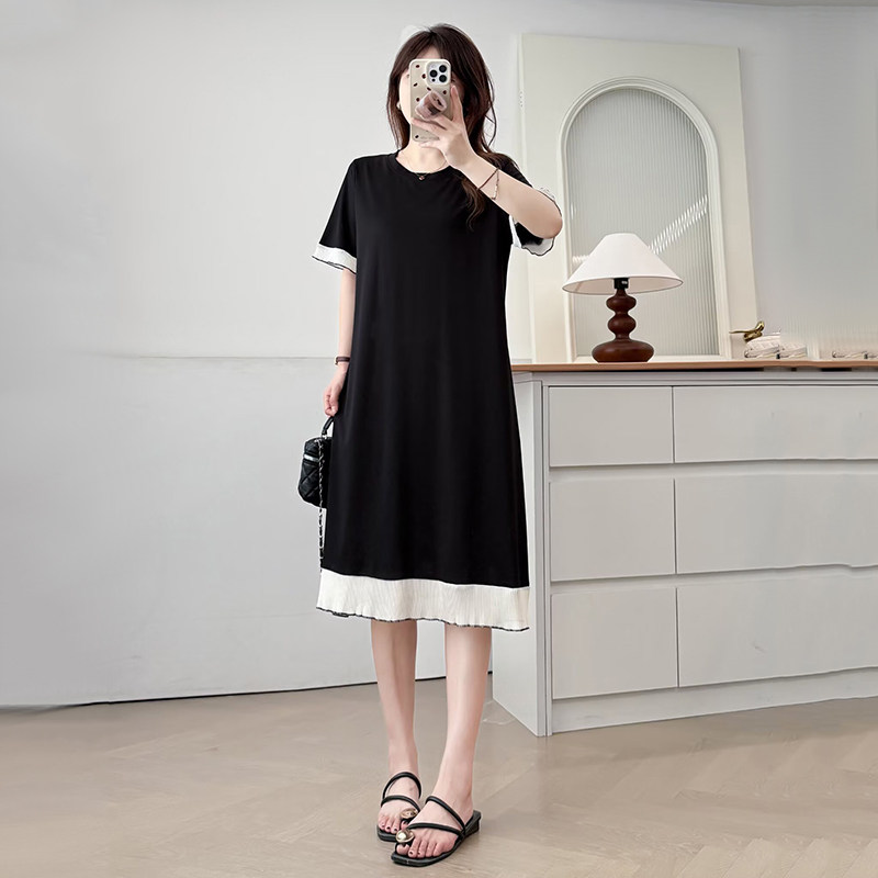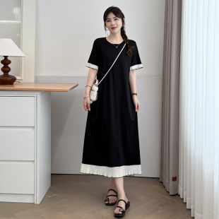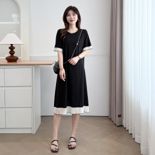 雪纺拼接中长款 大码 薄款 T恤裙女2025年夏季 连衣裙胖mm长裙子 短袖