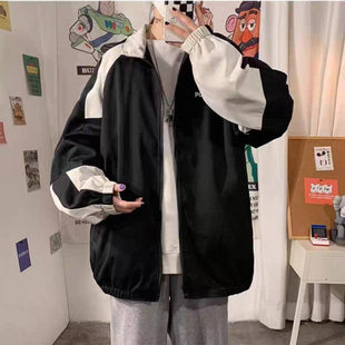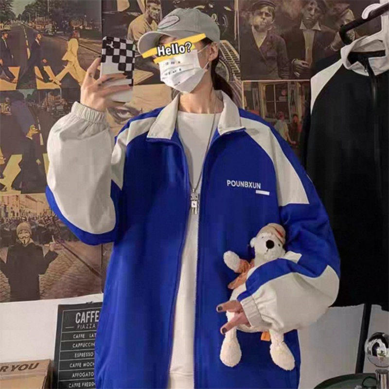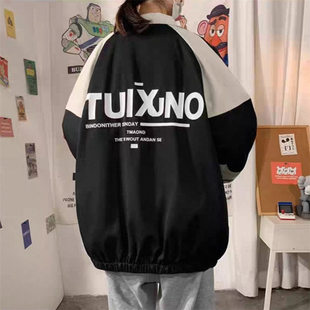 秋冬季 加绒拼色棉衣连帽羊羔绒外套男夹克初中青少年棉服袄子印花
