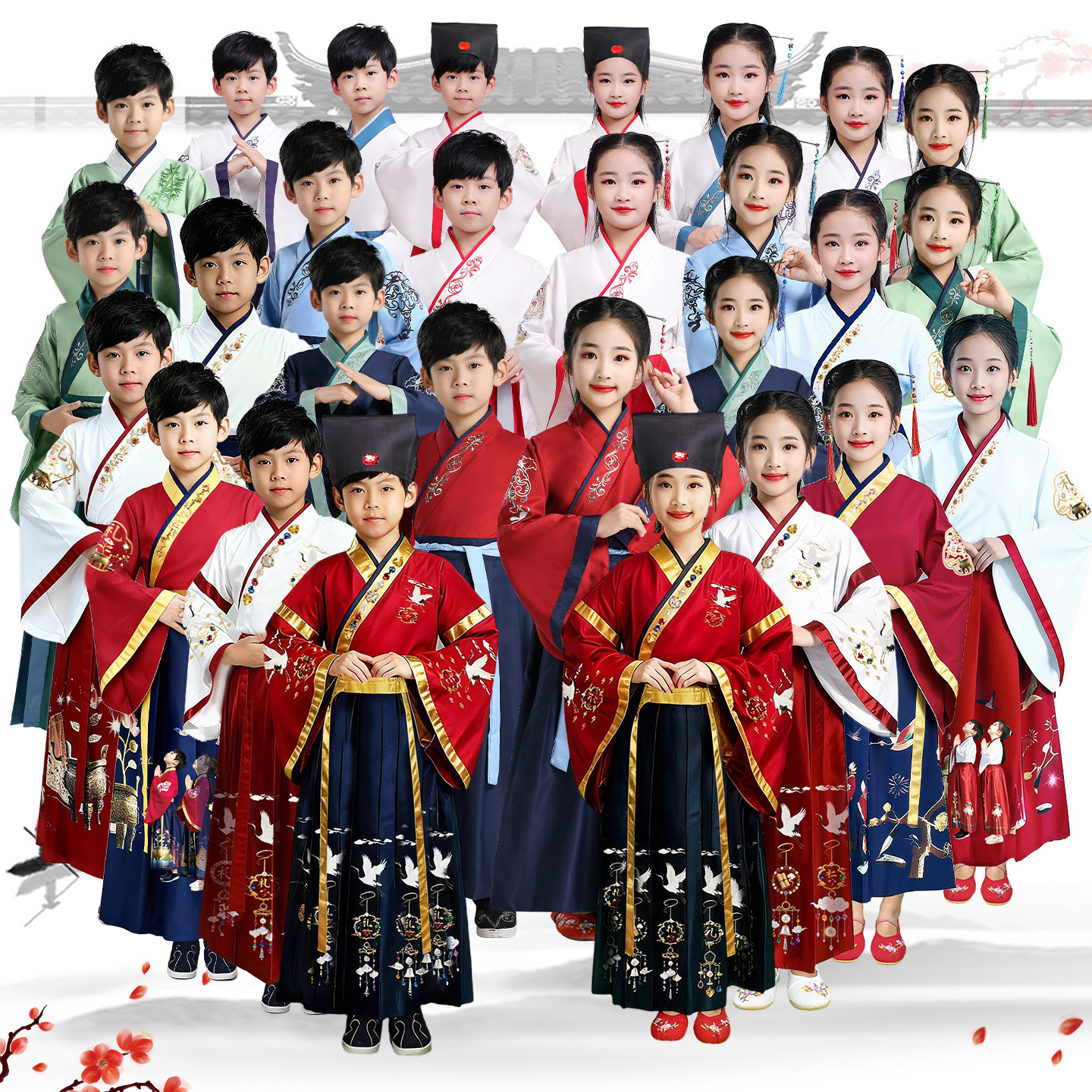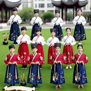 儿童汉服开笔启智礼润童心礼仪主题古装 男女童连体国学服演出服装