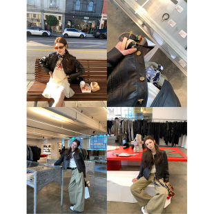 翻领外套高级感铆钉休闲上衣 黑色皮衣中短款 aaaaxbbb 黑皮革手册