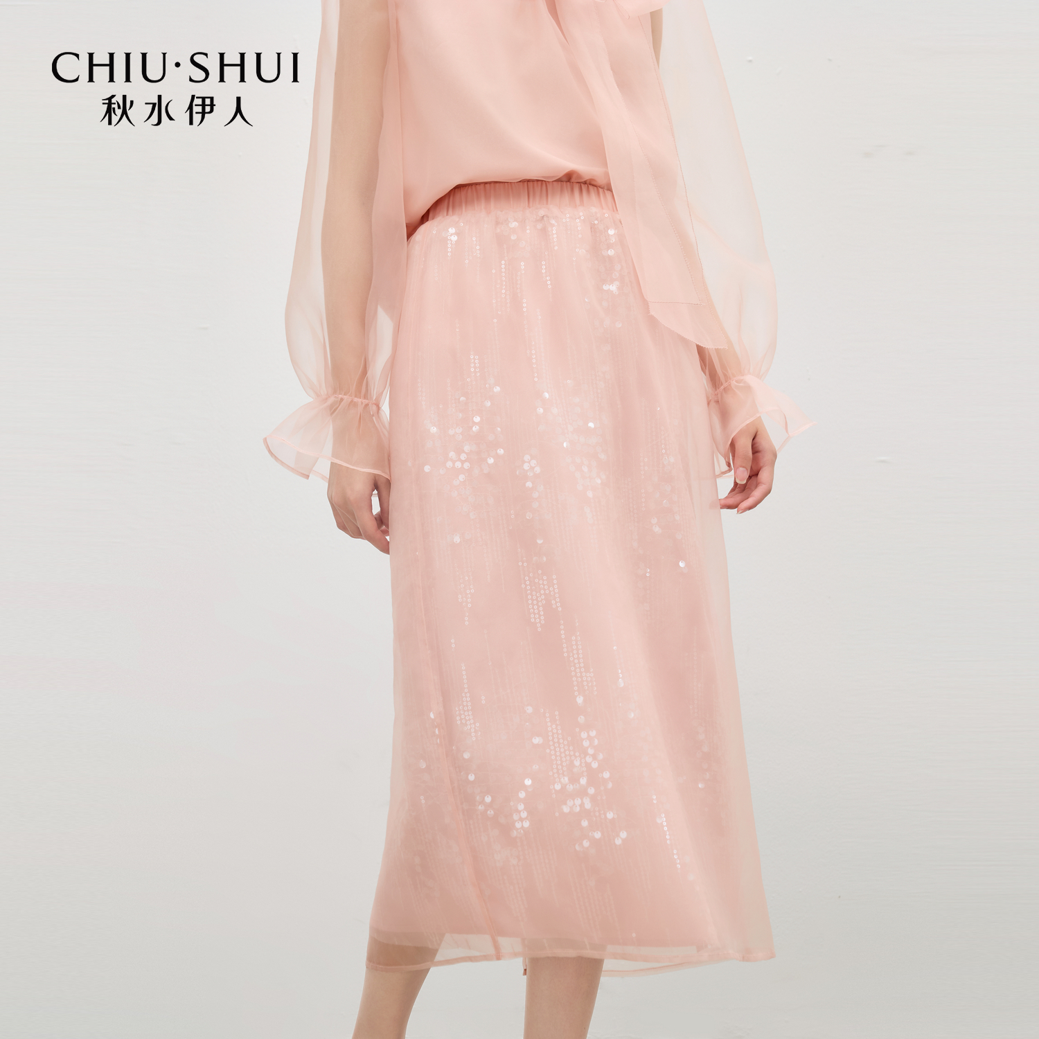 新款 秋水伊人粉色半身裙女公主裙2025秋装 百搭亮片半裙 千金风