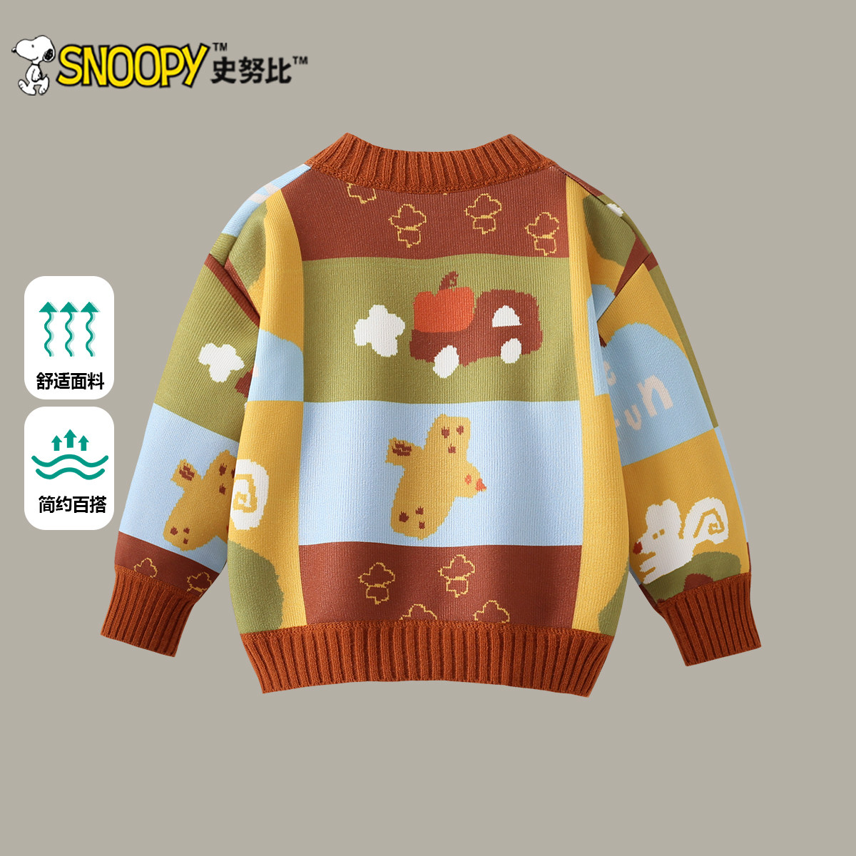 史努比儿童针织开衫 男童秋冬外套 上衣女童卡通加绒毛衣2025新款