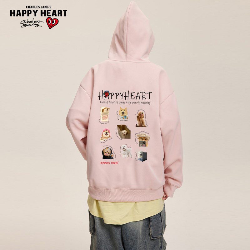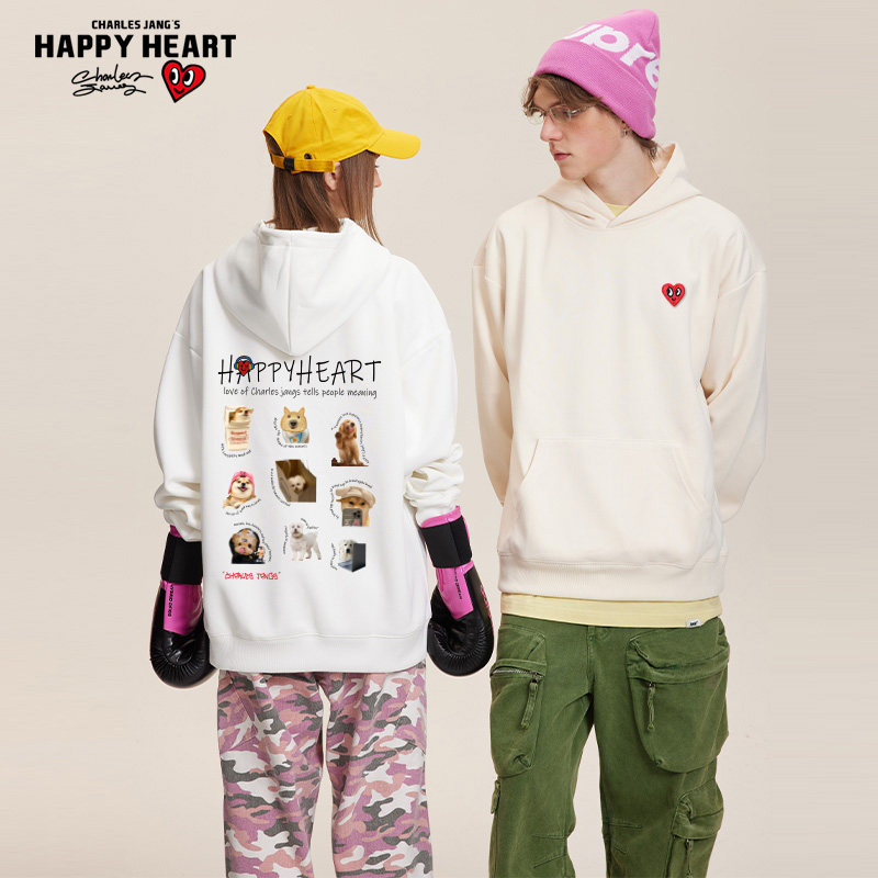 查尔斯桃心 云感双面超柔面料情侣外套 连帽卫衣小狗印花男女同款
