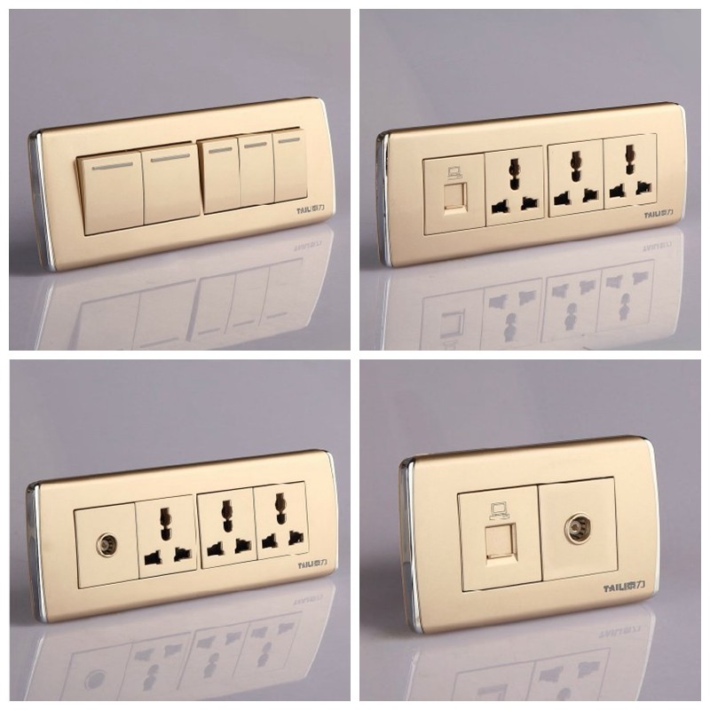 泰力开关面板118型900系列香槟金两插加开关多功能插座四位十孔