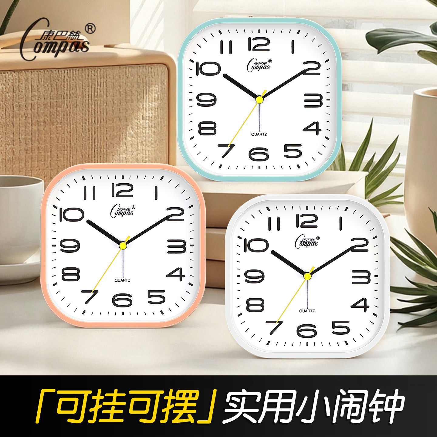 康巴丝简约挂钟方形钟表闹钟学生考试专用桌面时钟创意时尚 石英钟