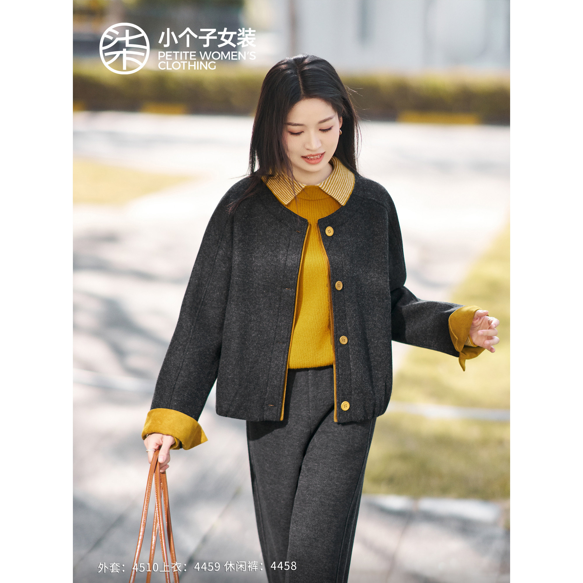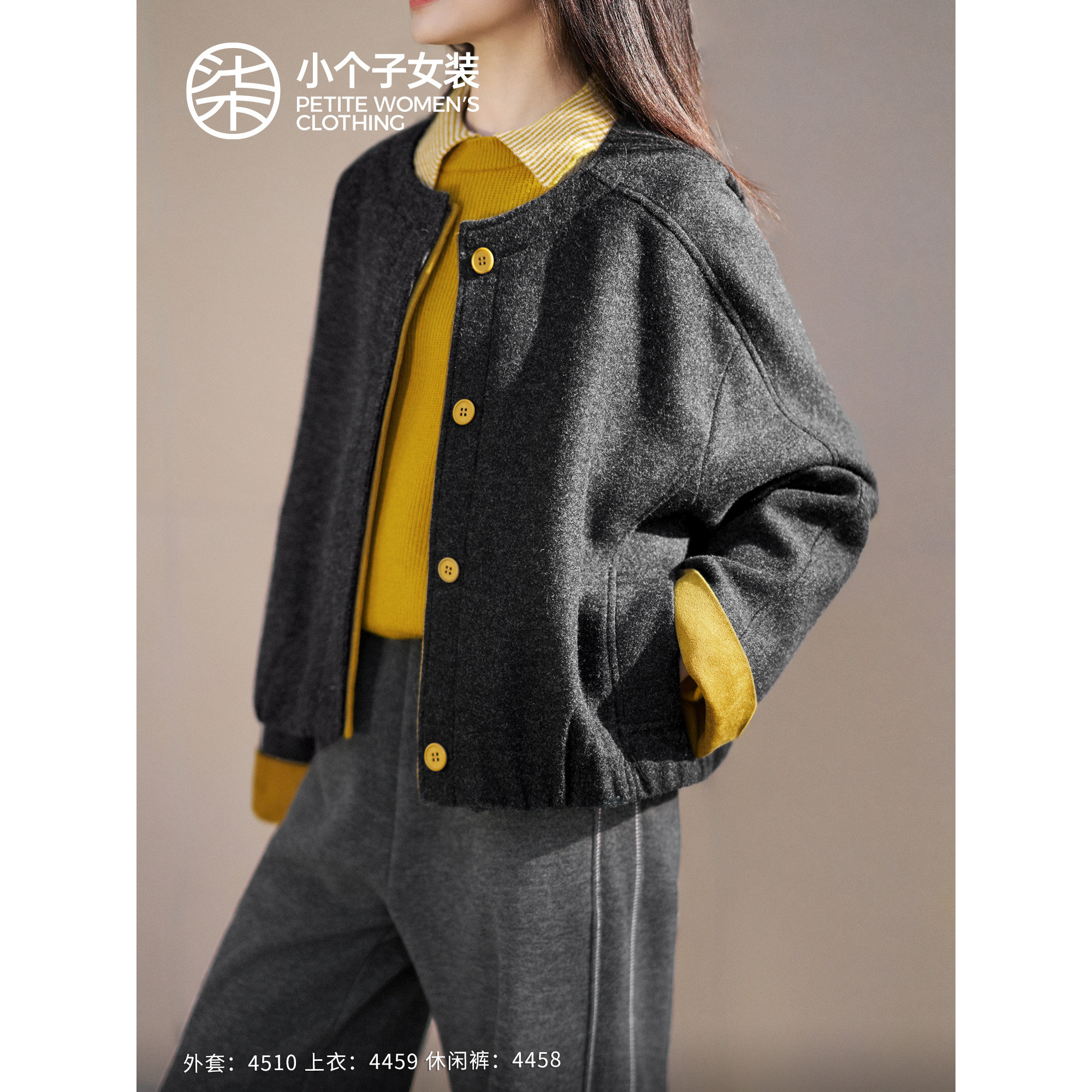 毛呢外套4510 好看女冬季 柒量一裁小个子短款 外套休闲撞色新款