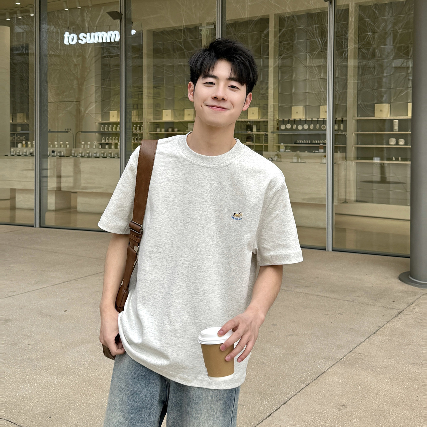 宽松百搭套头半袖 T恤夏季 240g重磅圆领短袖 上衣新款 小马刺绣