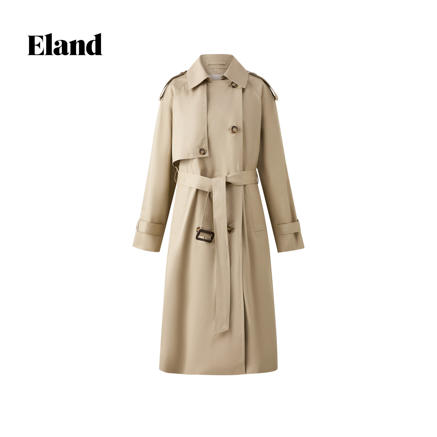 通勤外套2026夏季 Eland衣恋风衣女翻领合身长袖 新款 100%棉
