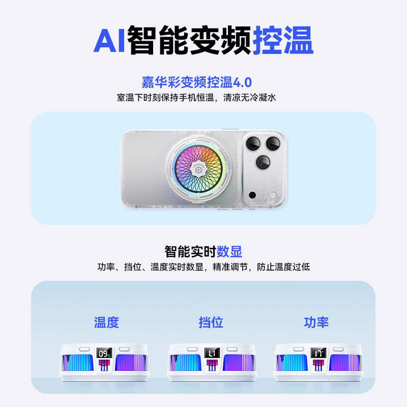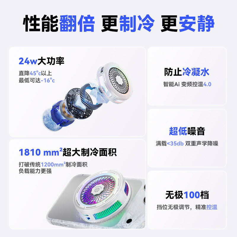 真结冰 智能AI温控手机散热器磁吸半导体制冷降温神器适用黑鲨苹果静音背夹平板ipad直播电竞专用 2026新款