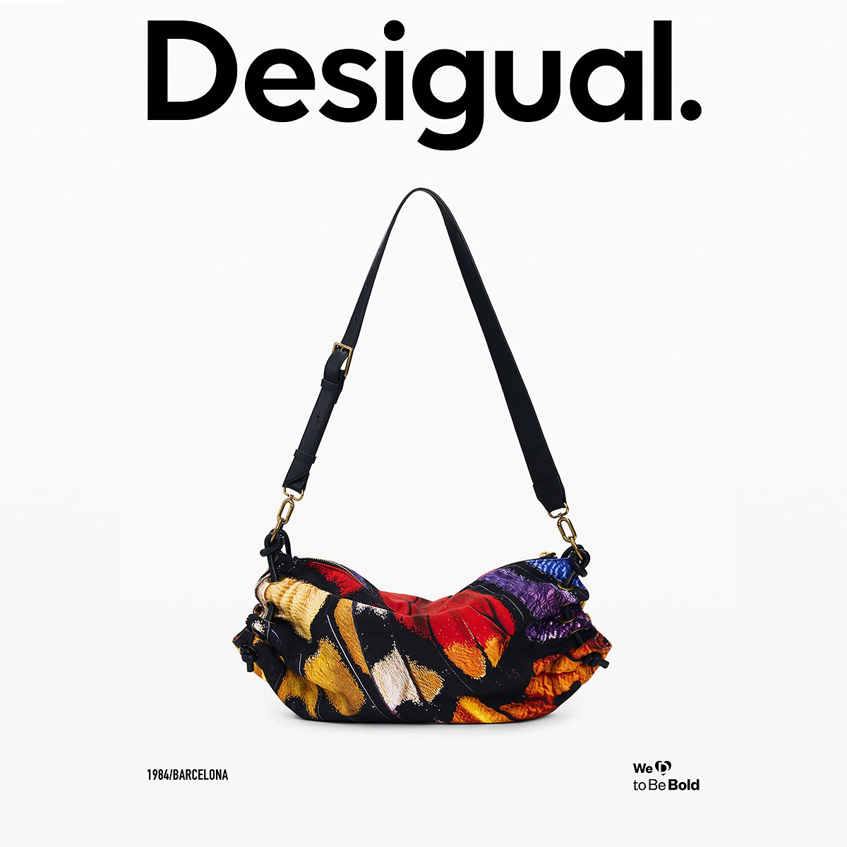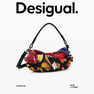 Desigual26春夏新品 手绘抽象蝴蝶印花单肩手提斜跨包