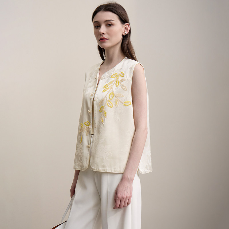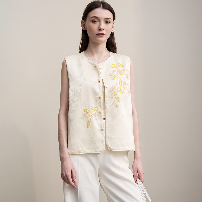 优雅国风新中式 Amii 26春夏时尚 马夹 重工钉珠马甲外套女 新中式