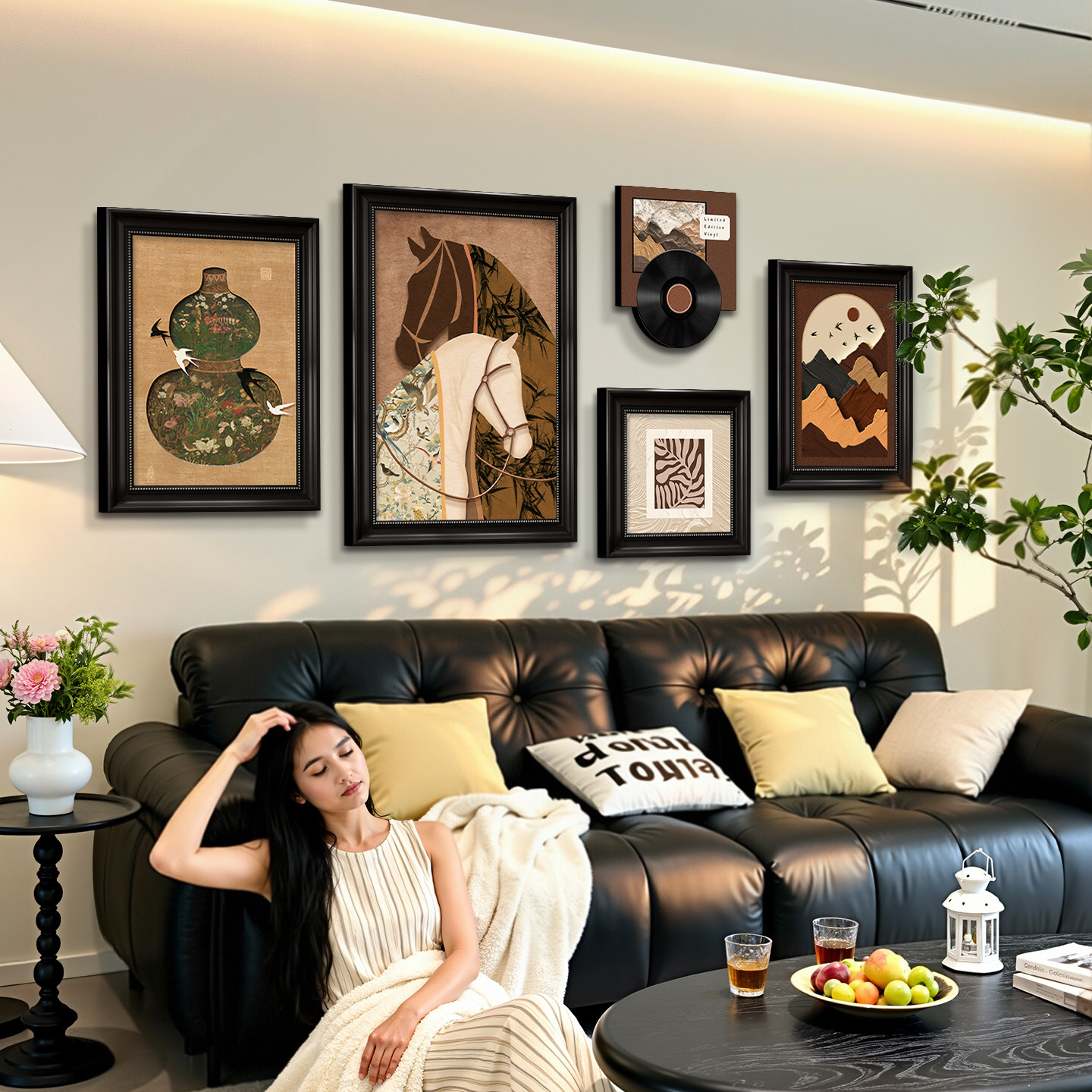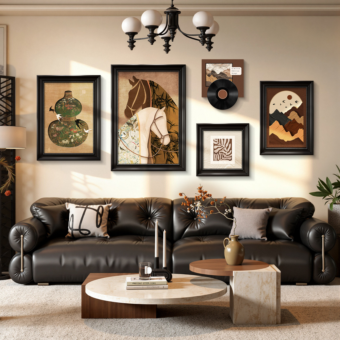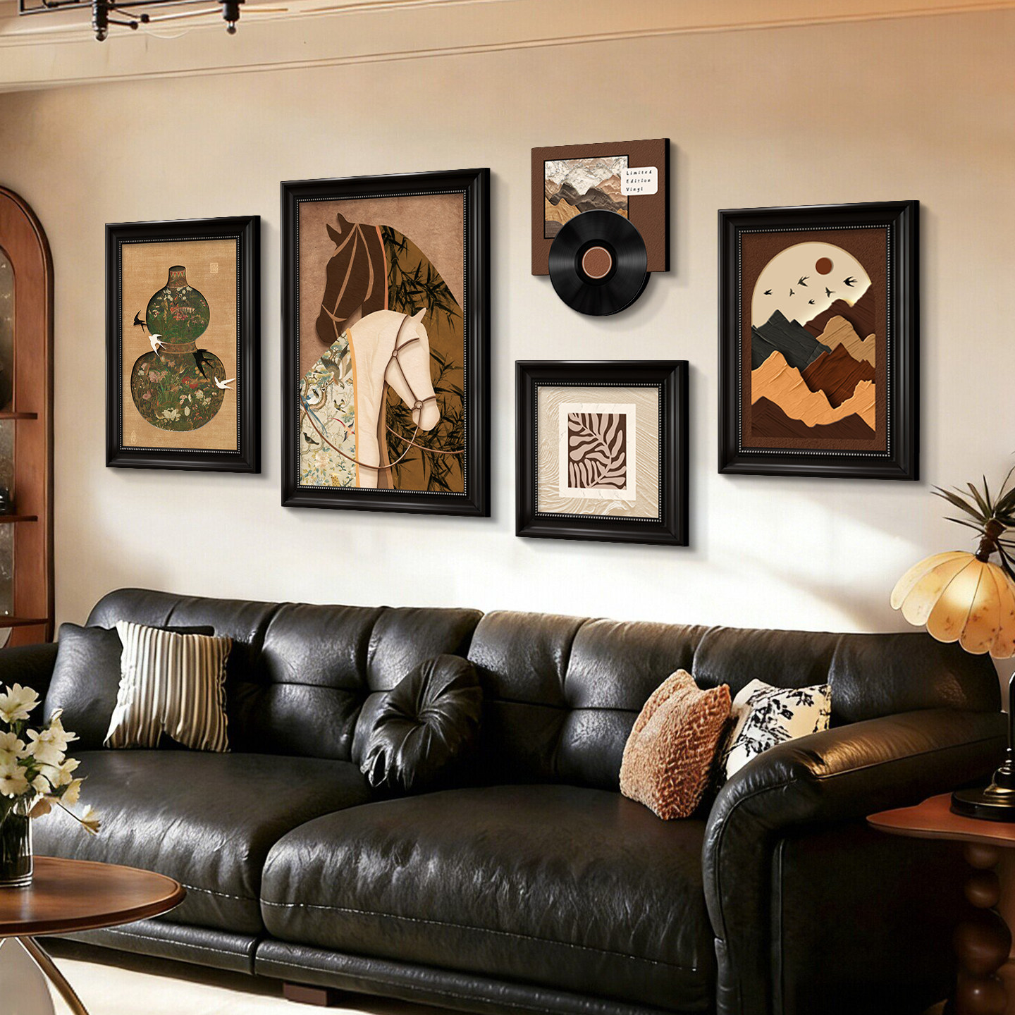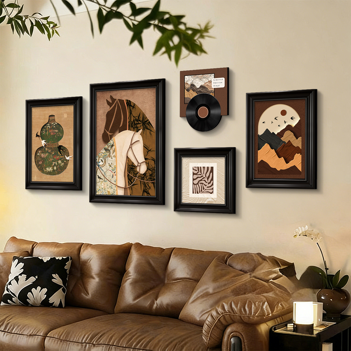马到成功客厅挂画中古风沙发背景墙装 复古油画餐厅壁画 饰画法式