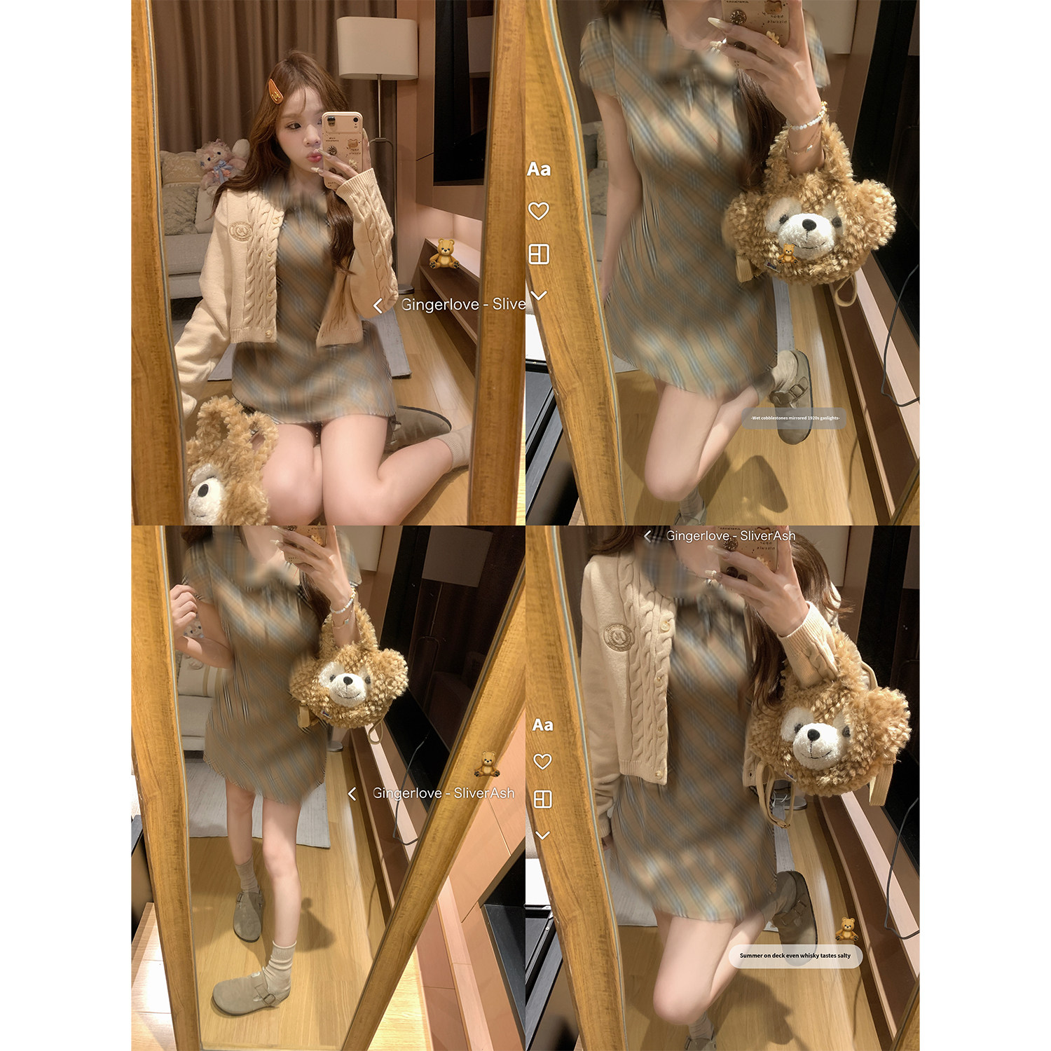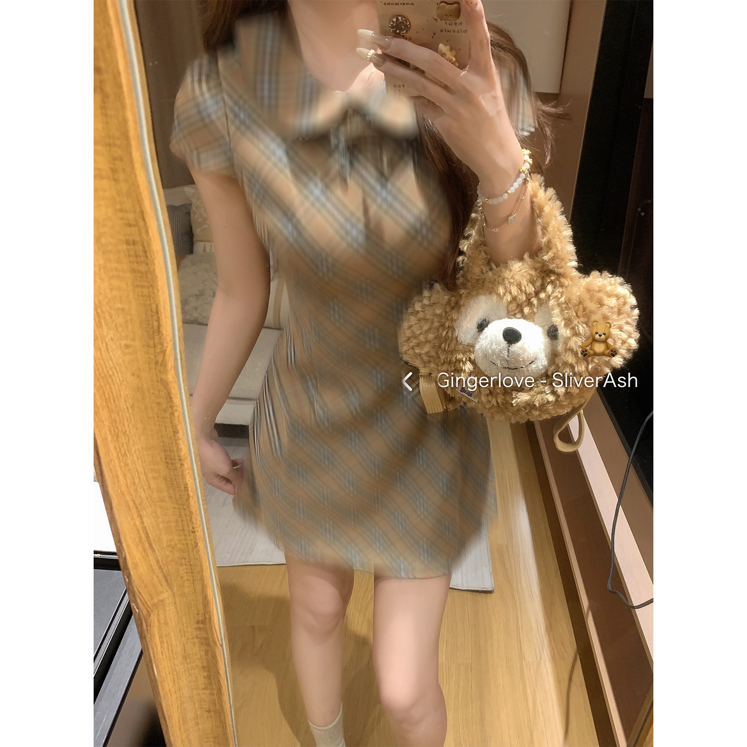 显气质撞色短裙 连衣裙修身 DDXZ夕子美式 复古风娃娃领系带格子短袖