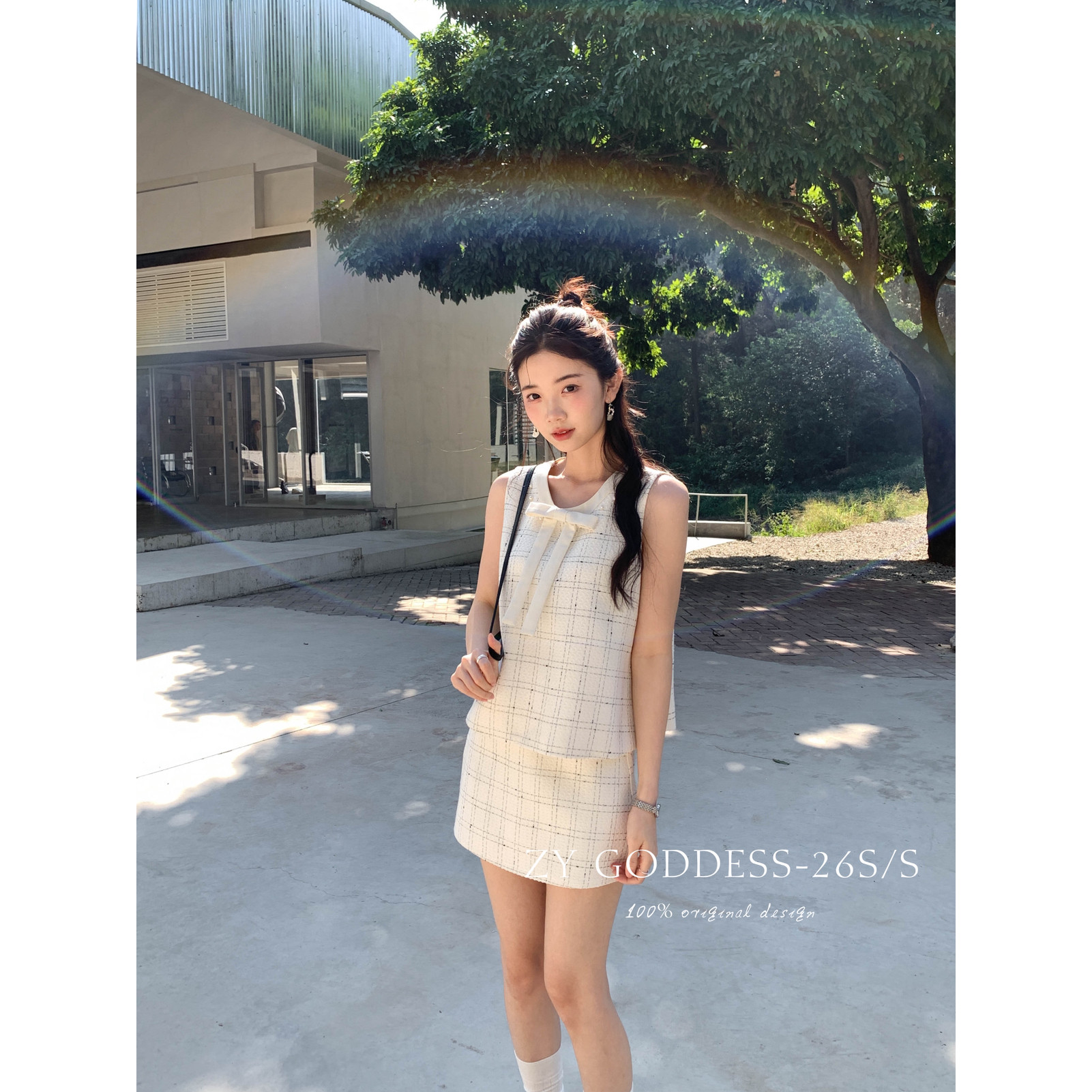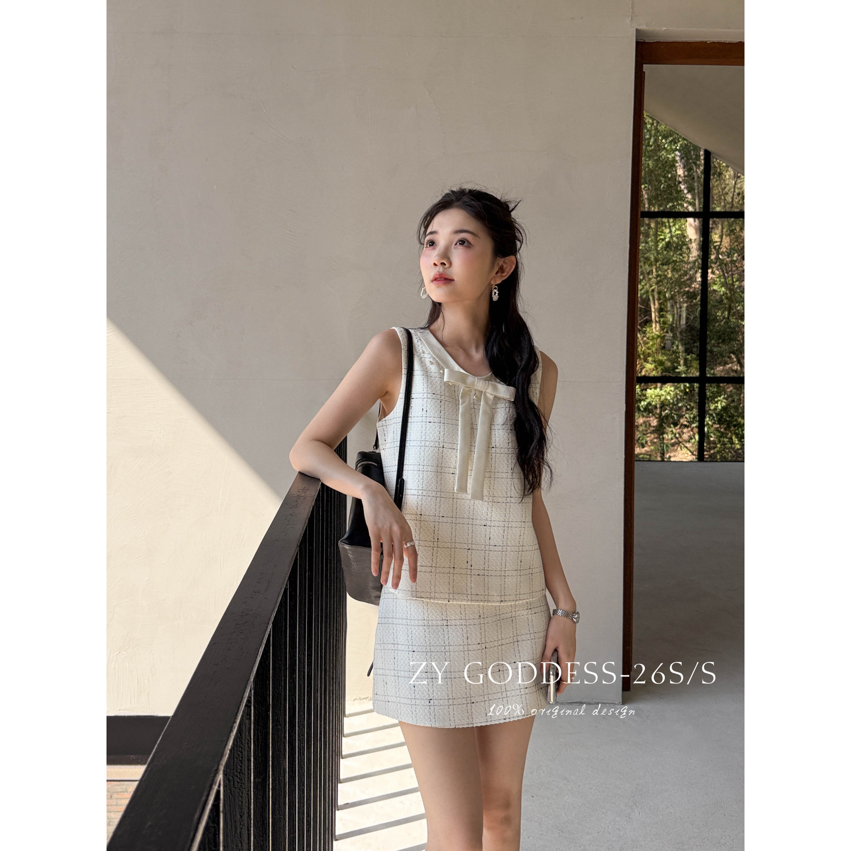GODDESS A字短半身裙套装 漫主义贵气小香风格 背心 86326 纹无袖